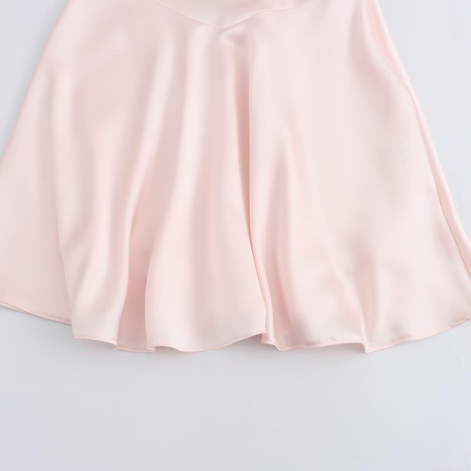 Solid Color, Off-the-shoulder Neckline, Thin Shoulder Straps, Invisible Zipper, Silk Satin Texture