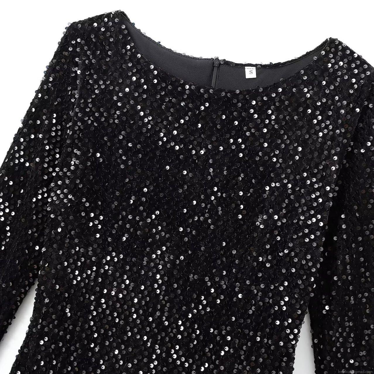 • Women Sexy Sequin Mini Dress Long Sleeve Round Neck Slim Fit Bubble Hem Ruffles Party Club Dating Night Out Dress Hot Girl Style