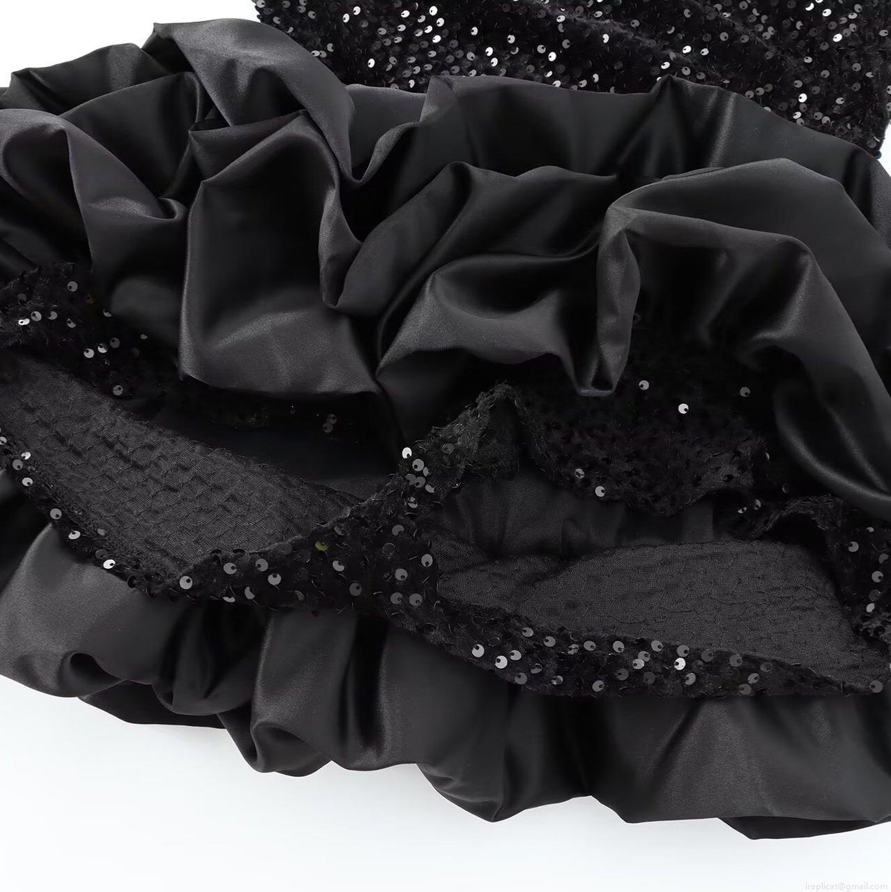 Solid Color, Zipper, Sequin Decoration, Flower Bud Skirt, 3d Ruffles