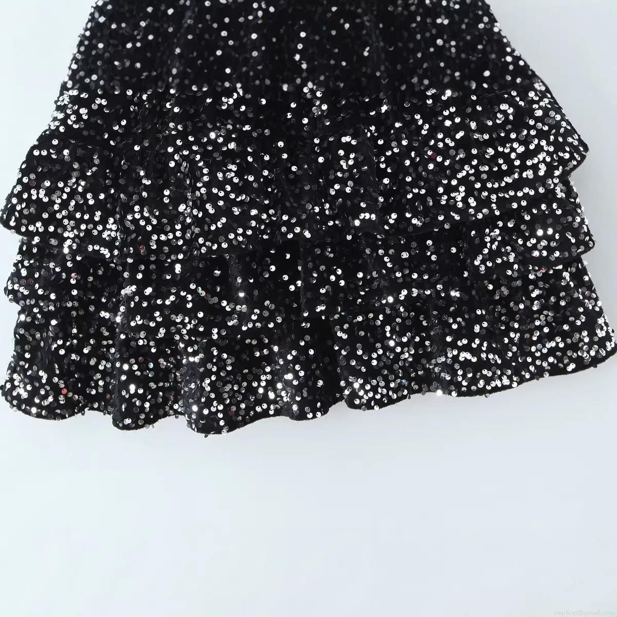 Solid Color, Mesh Splicing, Sequin Decoration, Hollow Design, Multi-tiered Cake Skirt