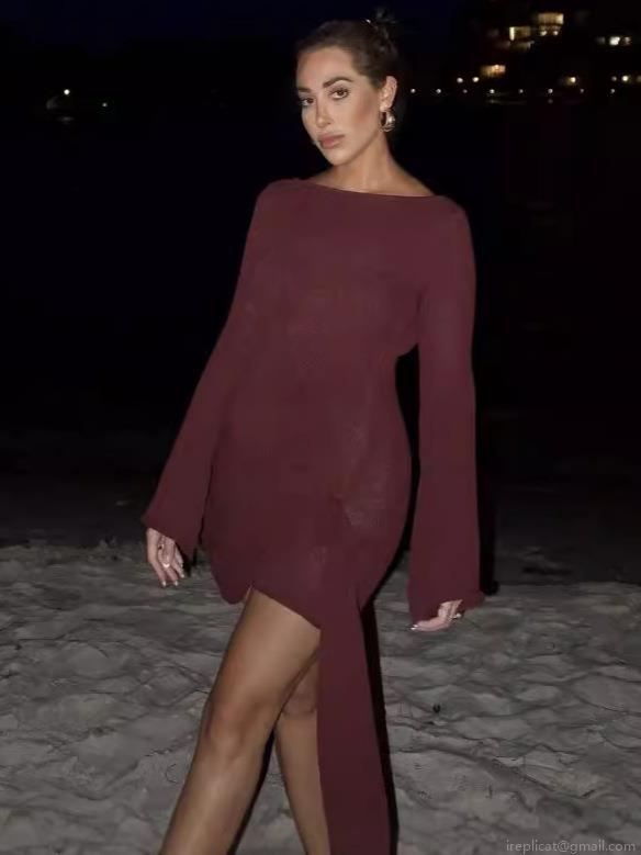 • Women Sexy Solid Color Ruched Tie-Up Mini Dress Slim Fit Long Sleeve Knit Bodycon Dress For Party Club Vacation Sweet Elegant Style