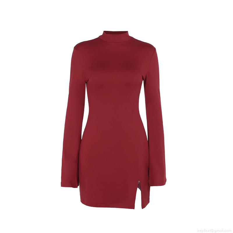 • Women Sexy Split Mini Dress Long Bell Sleeve Elegant Bodycon Knit Dress Half Turtleneck Slim Fit Solid Color Polyester Spandex Club Party Outfits