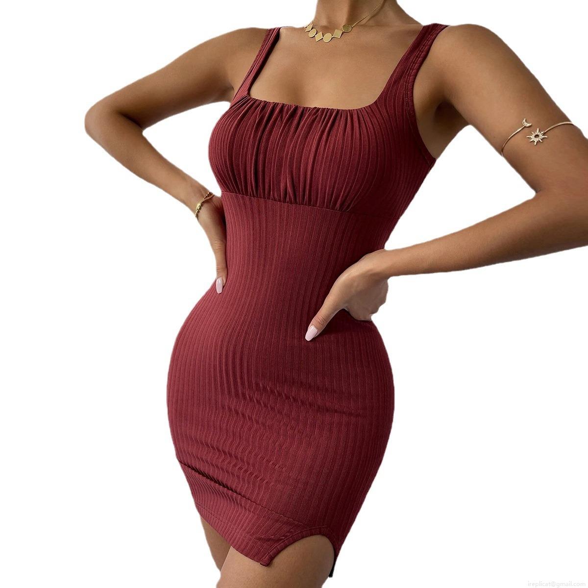 • Women Sexy Square Neck Sleeveless Ribbed Knit Mini Dress Ruched Bodycon Side Slit Slim Fit Body Hugging Sundress For Party Club Summer Outfit Women's Clothing