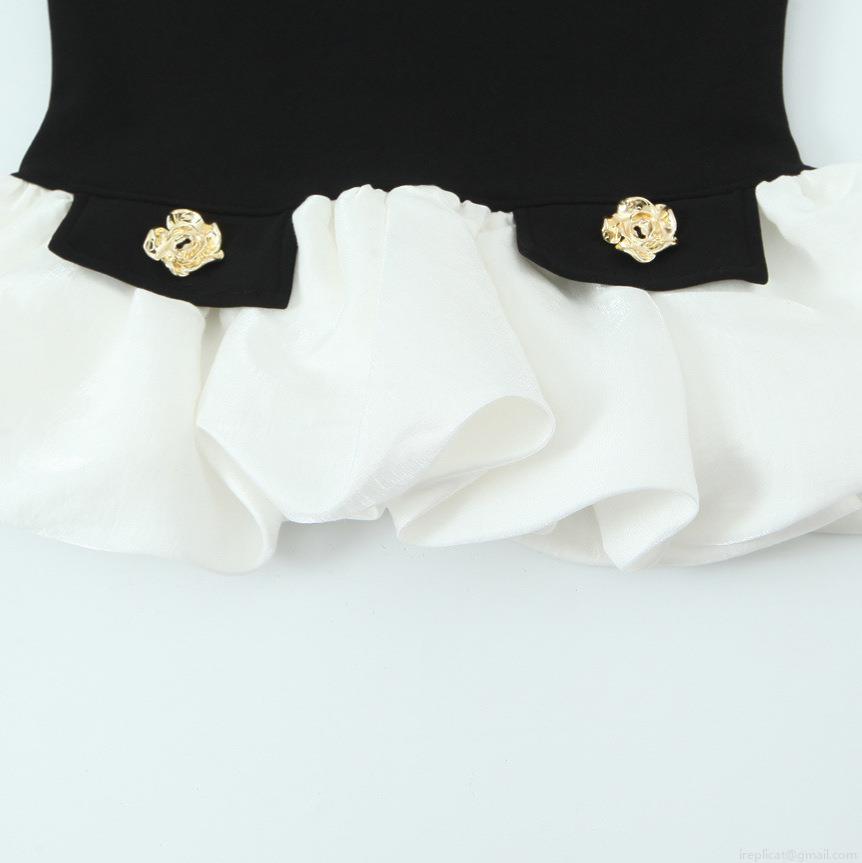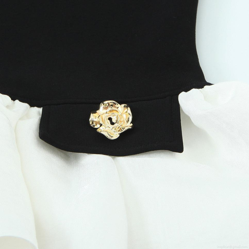 Gold Rose-shaped Decorative Buckle, Contrasting Color Ruffled Hem