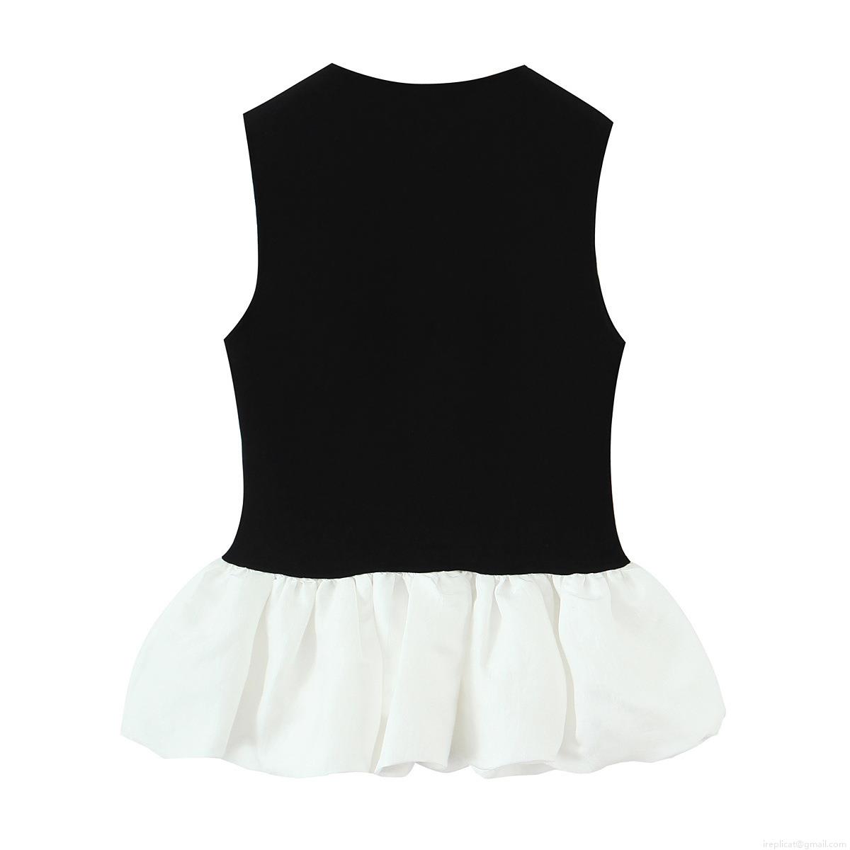 • Women Sexy Sweet Color Block Mini Dress Sleeveless Round Neck Slim Fit Ruffle Hem Dress With Gold Rose Buttons Party Daily Polyester Spandex Sundress