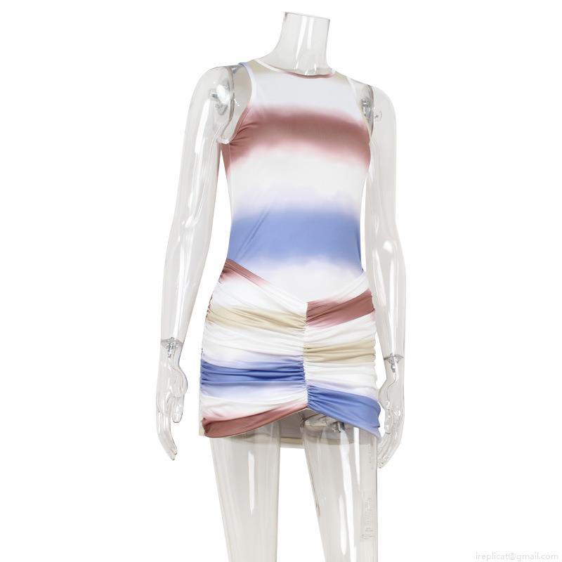 Women Sexy Tie Dye Ruched Bodycon Mini Dress Sleeveless Round Neck Slim Fit Summer Club Party Sun Dress Polyester Spandex Gradient Print Dress