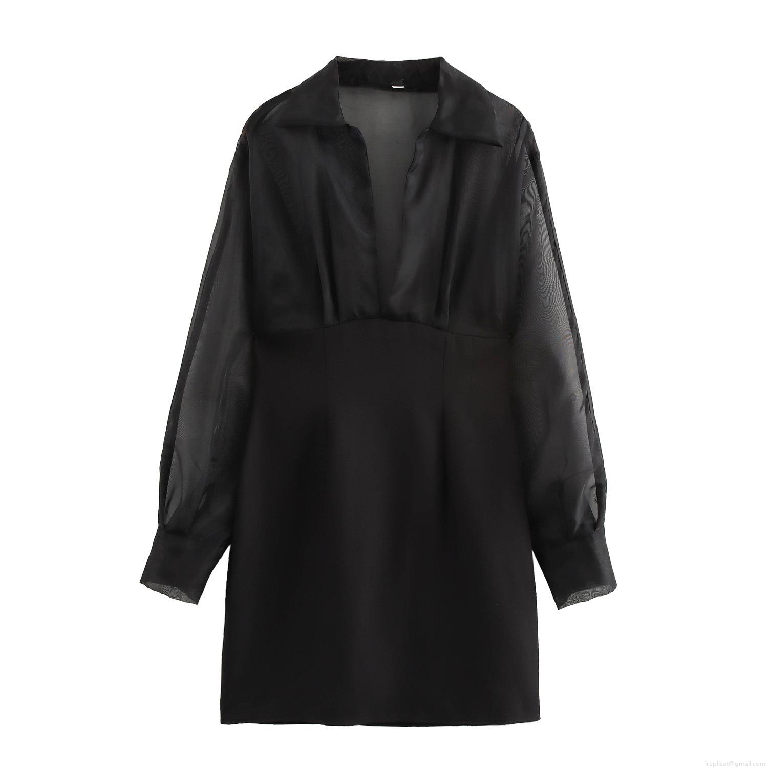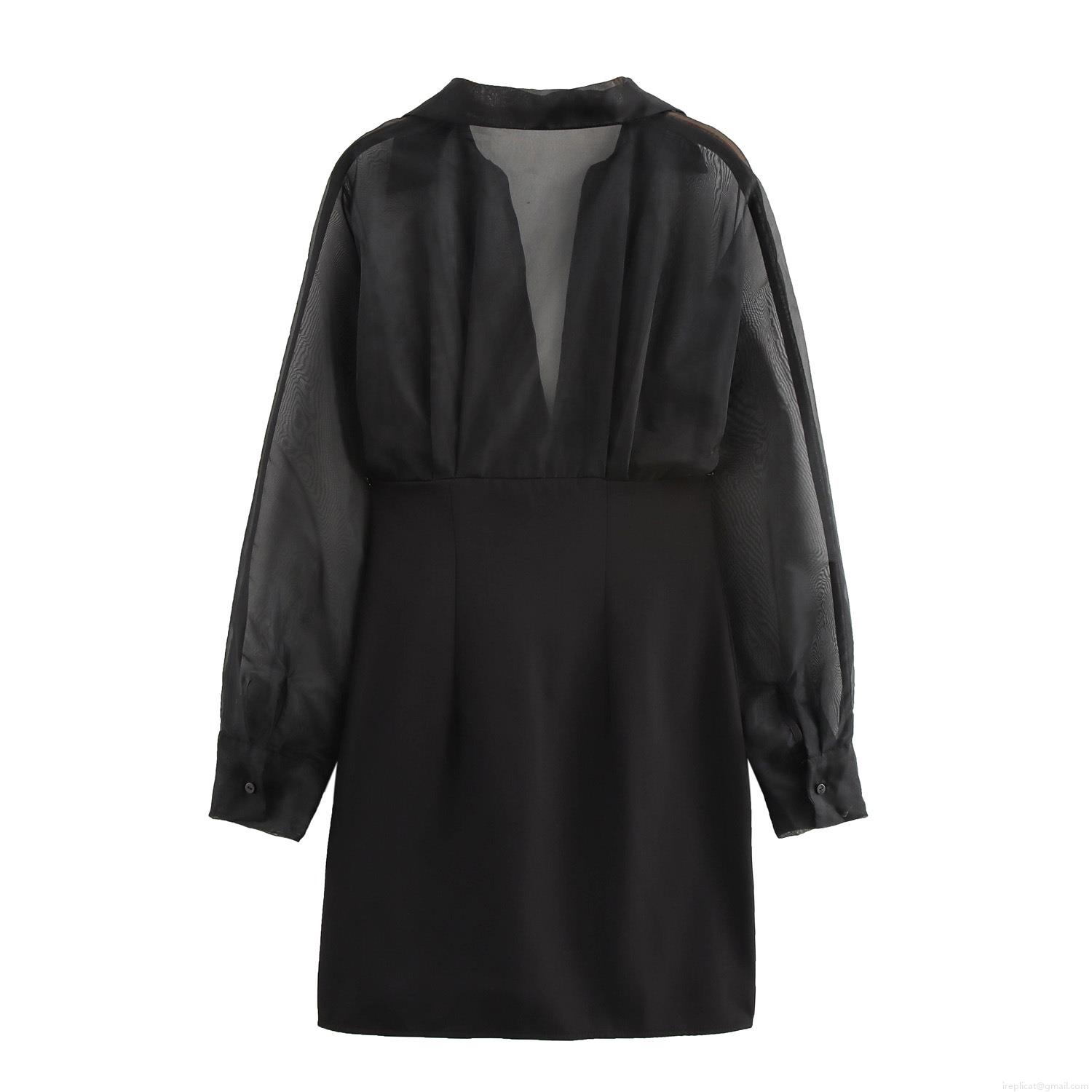 • Women Sexy V Neck Organza Patchwork Bodycon Dress Elegant Mesh Long Sleeve Mini Pencil Skirt For Party Dating Evening Women Clothing