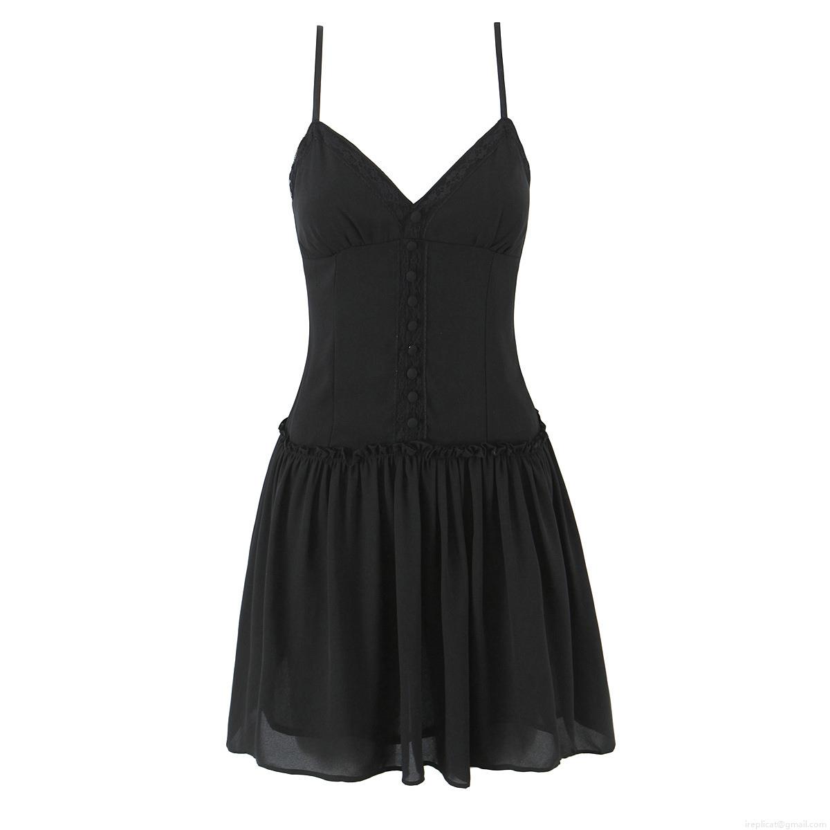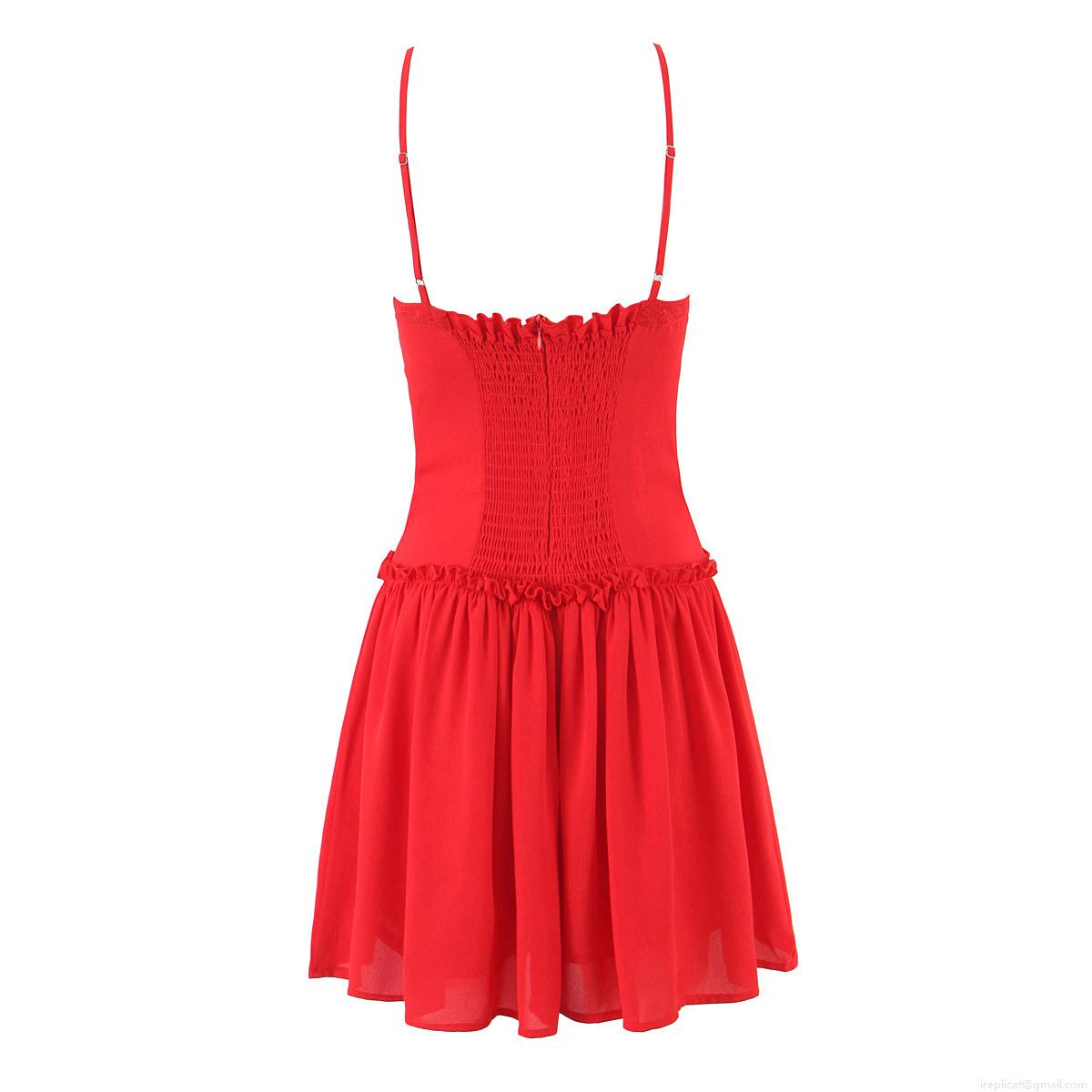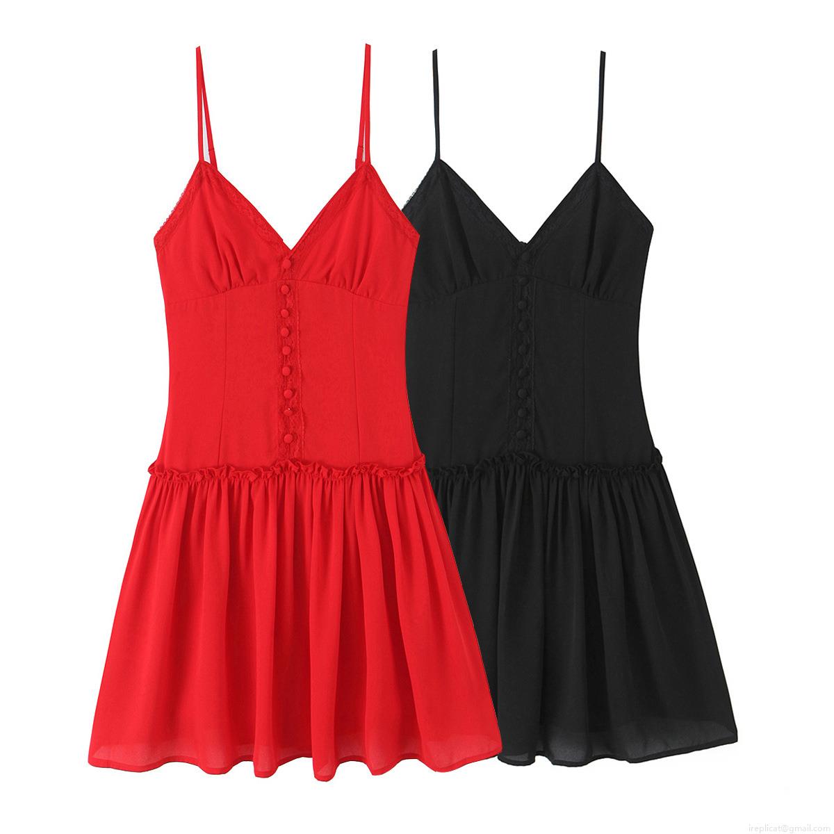 • Women Sexy V Neck Sling Mini Dress Polyester Lace Patchwork Ruffle Hem Backless Cami Dress With Button Decor For Summer Party Streetwear Casual Wear