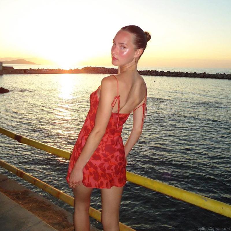 • Women Sexy V-Neck Floral Print Camisole Dress Summer Polyester Spandex Vacation Style Mini Sundress For Women Slim Fit Backless Beachwear
