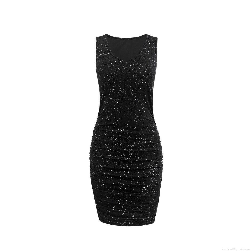 • Women Sexy V-Neck Sleeveless Glitter Bodycon Mini Dress Ruched Sparkly Starry Print Polyester Spandex Slim Fit Party Club Evening Dress