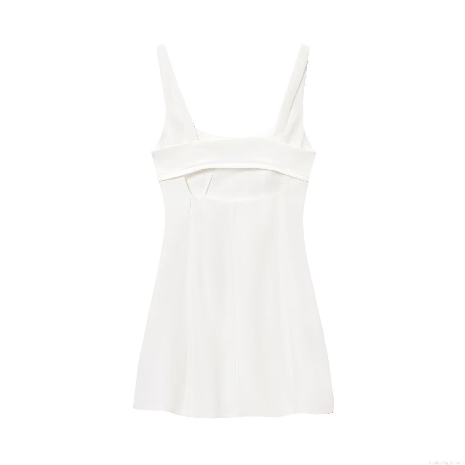 • Women Sexy White Satin V-Neck Backless A-Line Mini Dress Sleeveless Spaghetti Strap Summer Party Clubwear Elegant Bodycon Camisole Dress