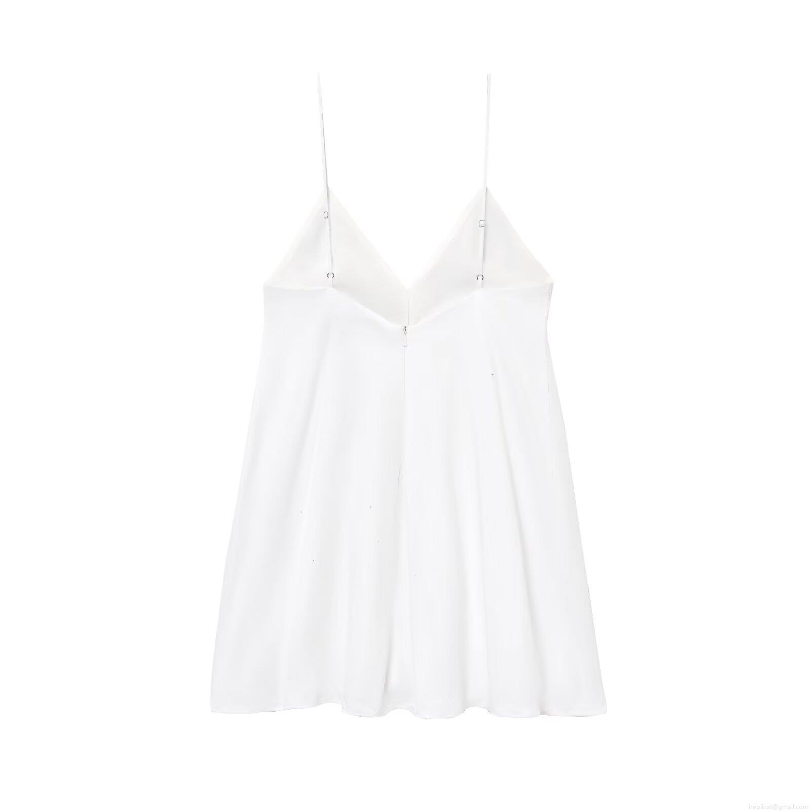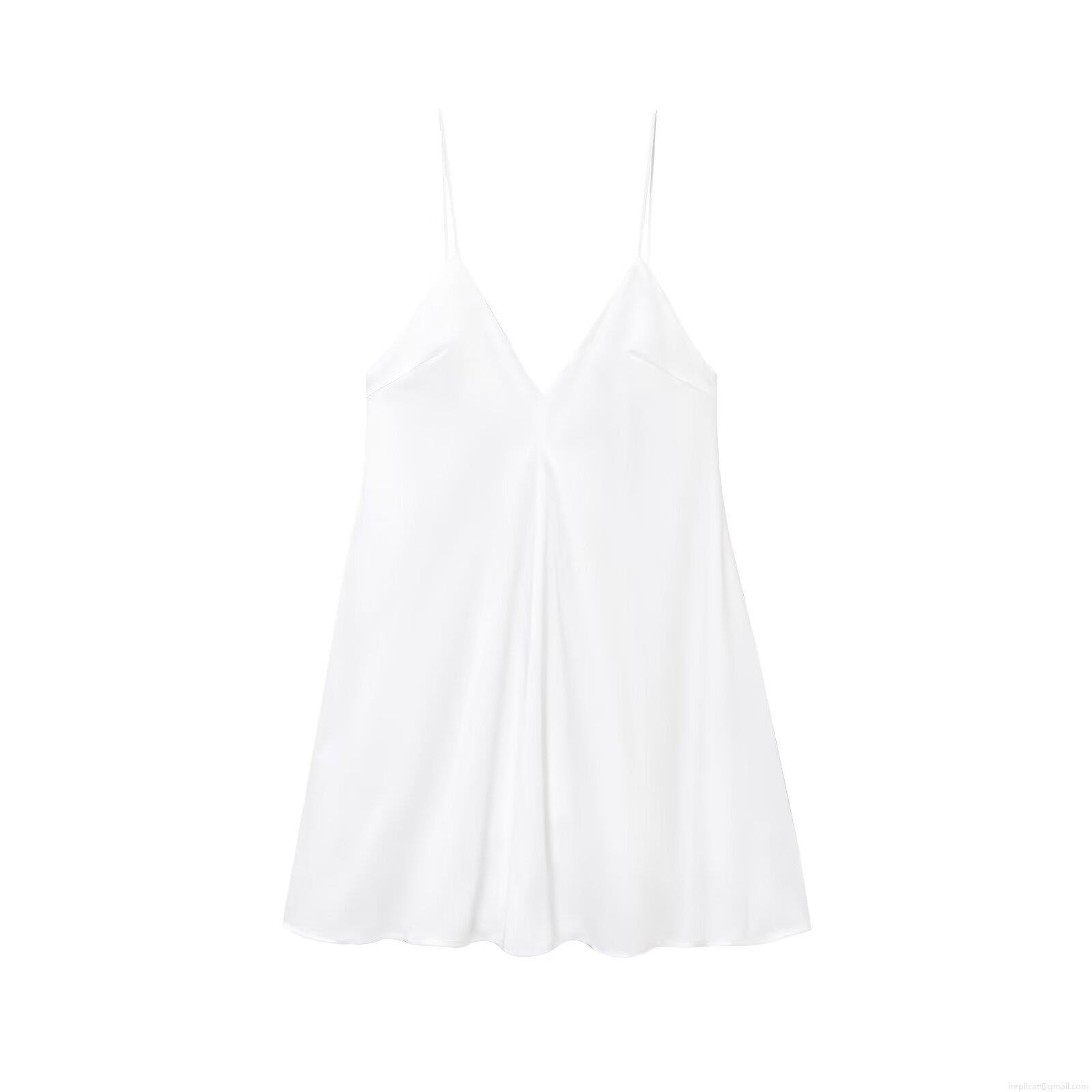 • Women Sexy White Satin V-Neck Slip Dress Adjustable Straps Backless Mini Party Dress For Summer Elegant Ladies Cocktail Evening Wear