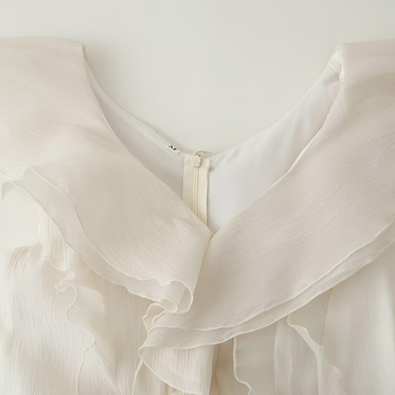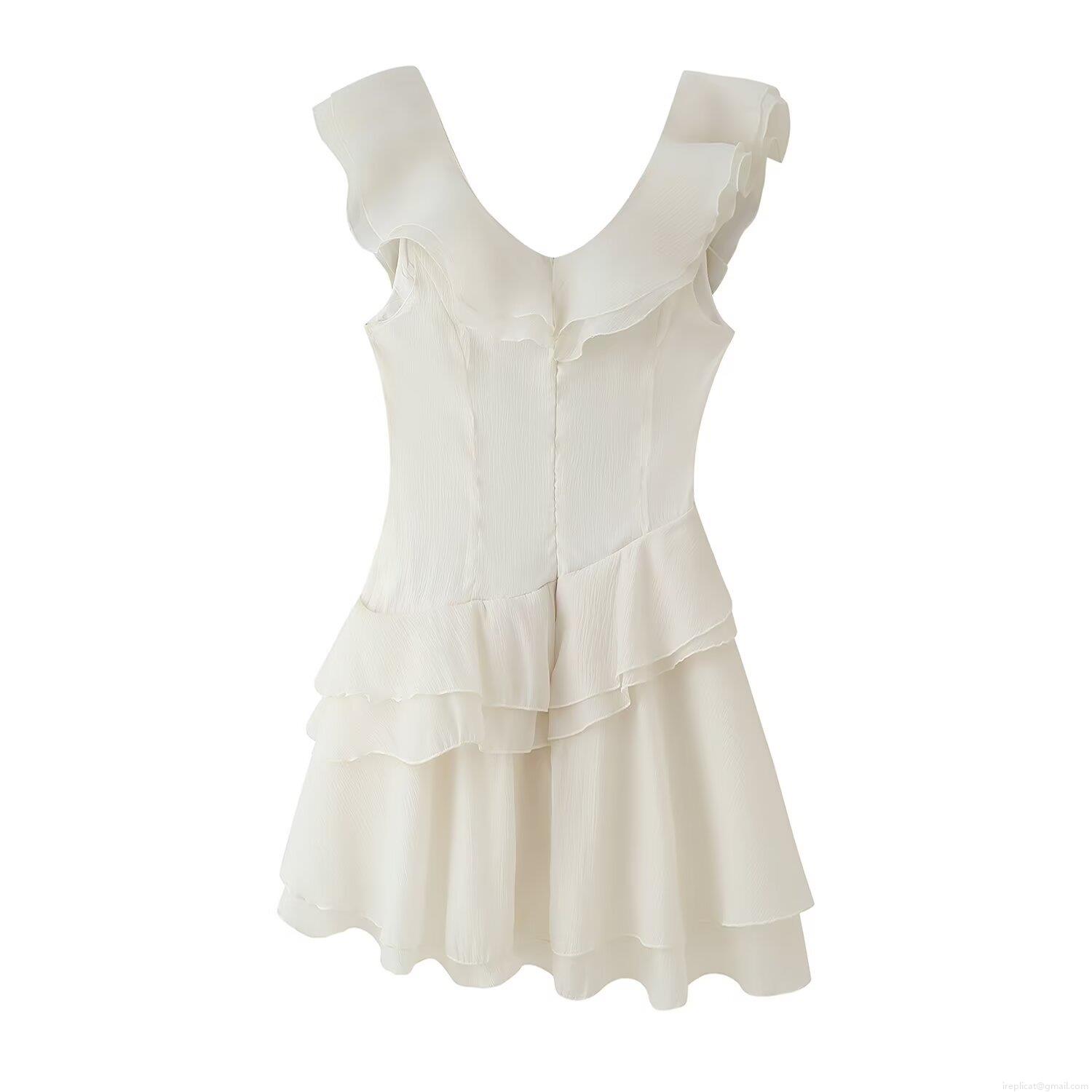 • Women Sexy White V Neck Ruffle Mini Dress Chiffon Sleeveless Irregular Hem Cake Dress For Party Evening Summer Slim Fit Solid Color Short Dress