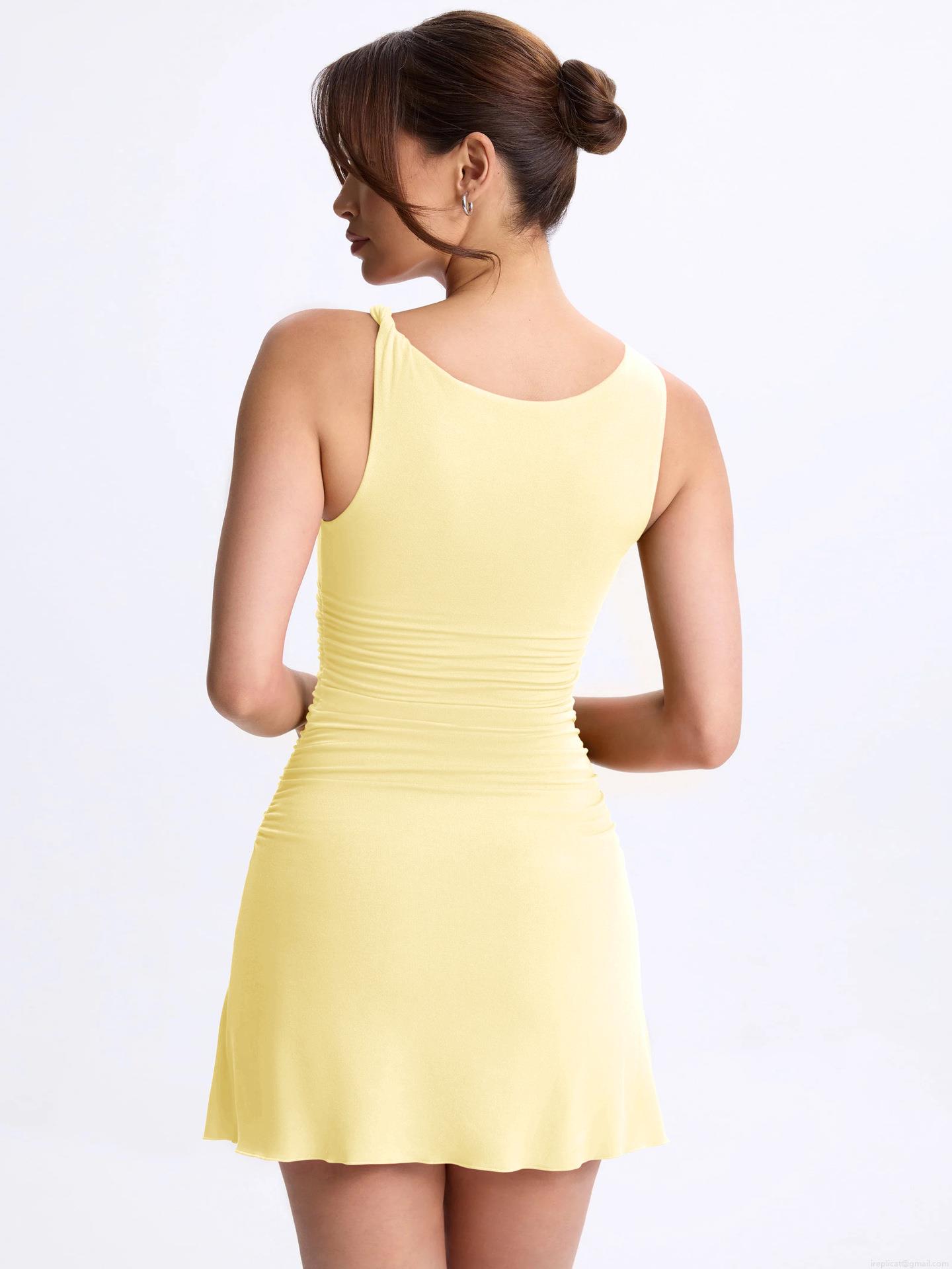 • Women Sexy Y2K Sleeveless Ruched Mini Dress Slim Fit Knitted Bodycon Tank Party Club Dress Solid Color Summer Beach Evening Sun Dress