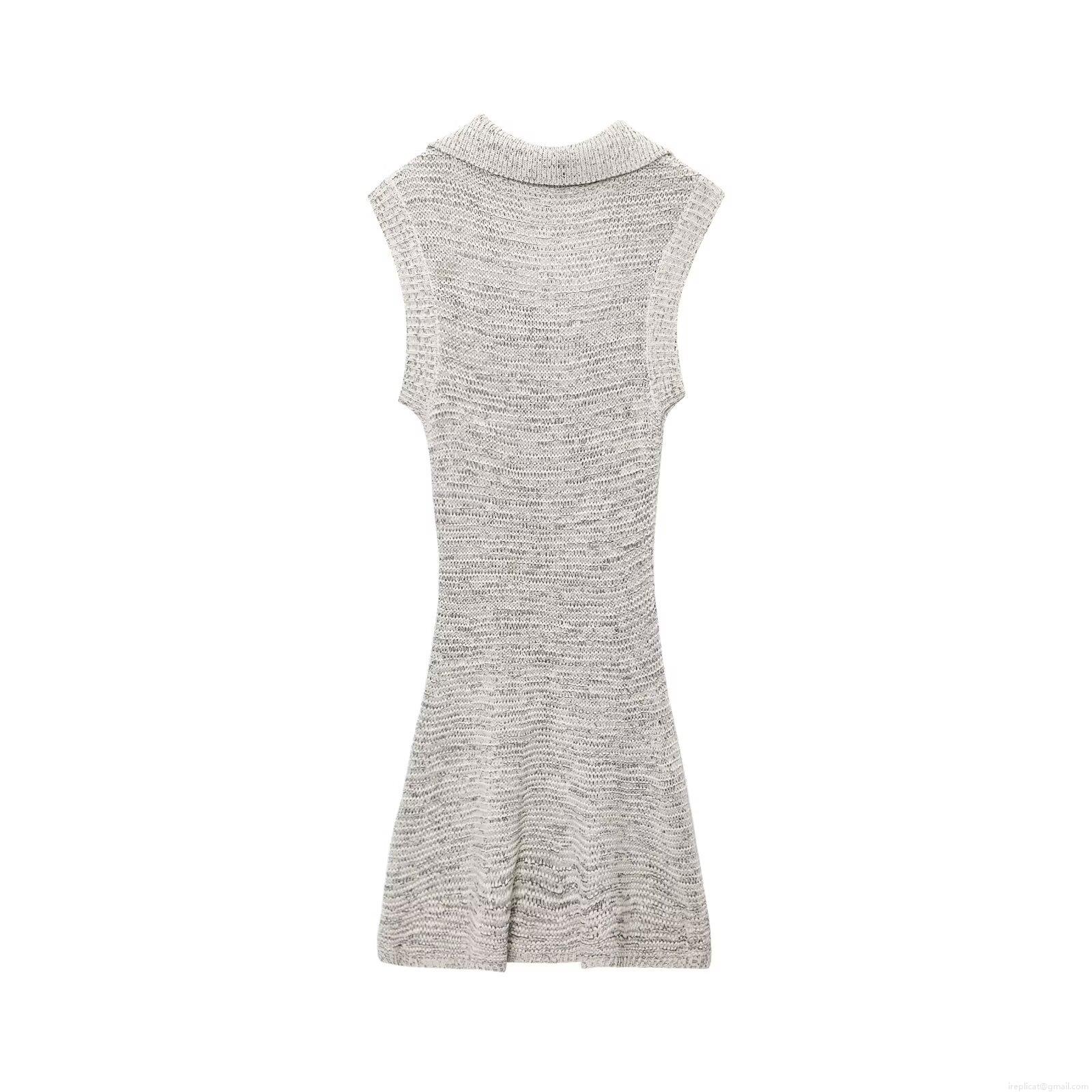 Women Sleeveless Knit Mini Dress Sexy Lapel Lace Up Slim Fit Oatmeal Bodycon Dress Summer Casual Party Beach Streetwear Ladies Short Dresses