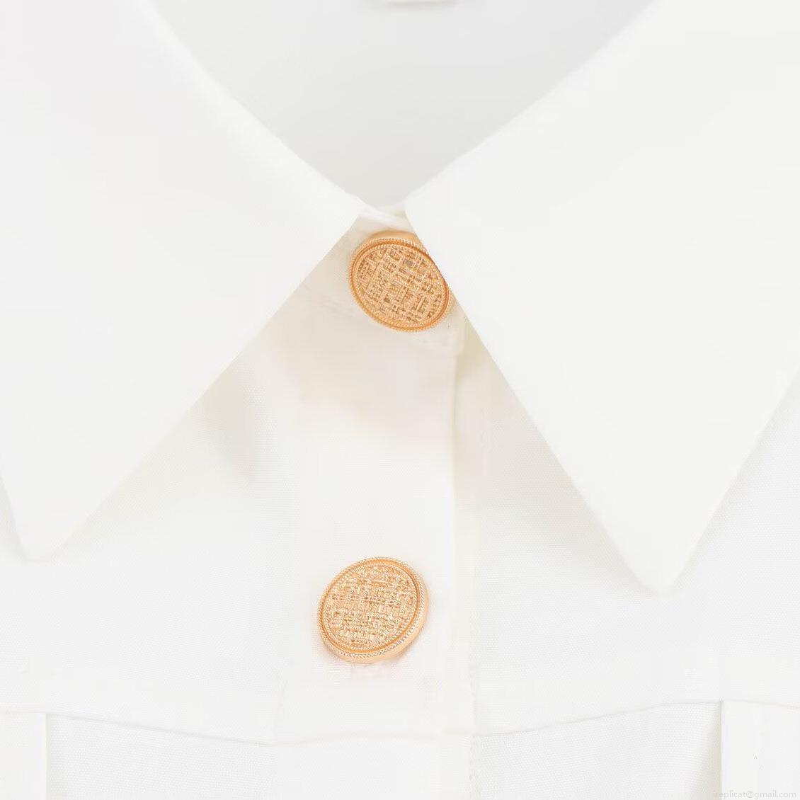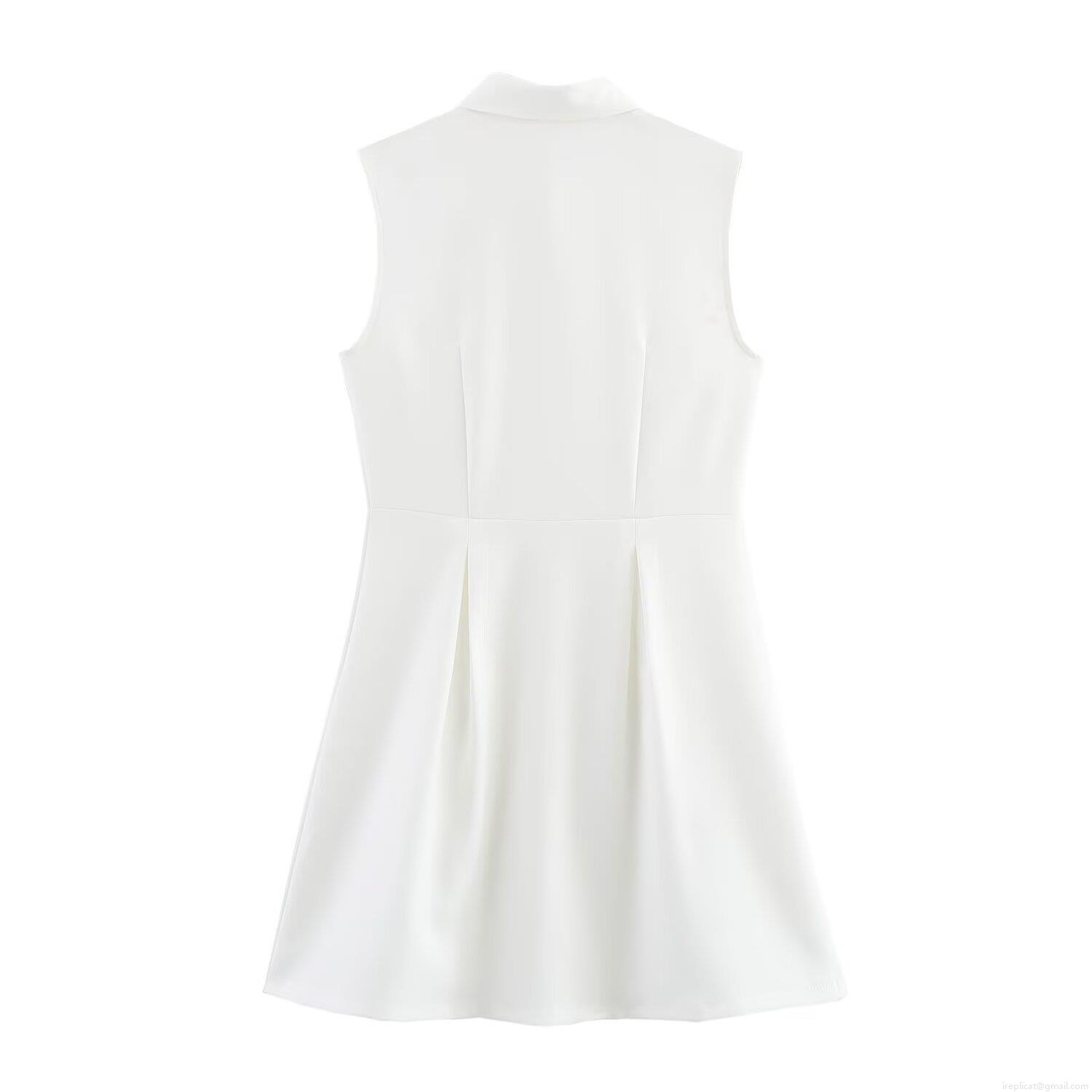 • Women Sleeveless Lapel Mini Dress British Style Gold Button High Waist A-Line Pleated Dress Solid White Polyester Elegant Commuter Dress For Party