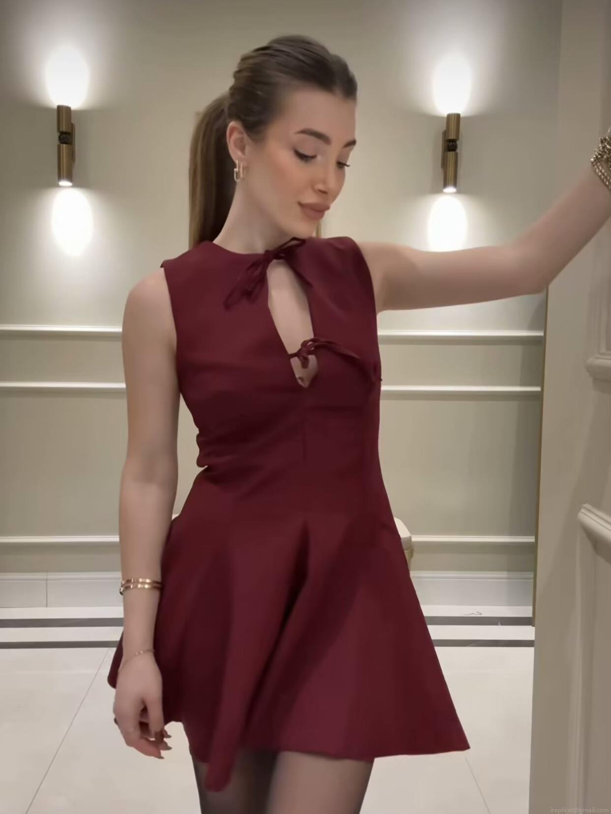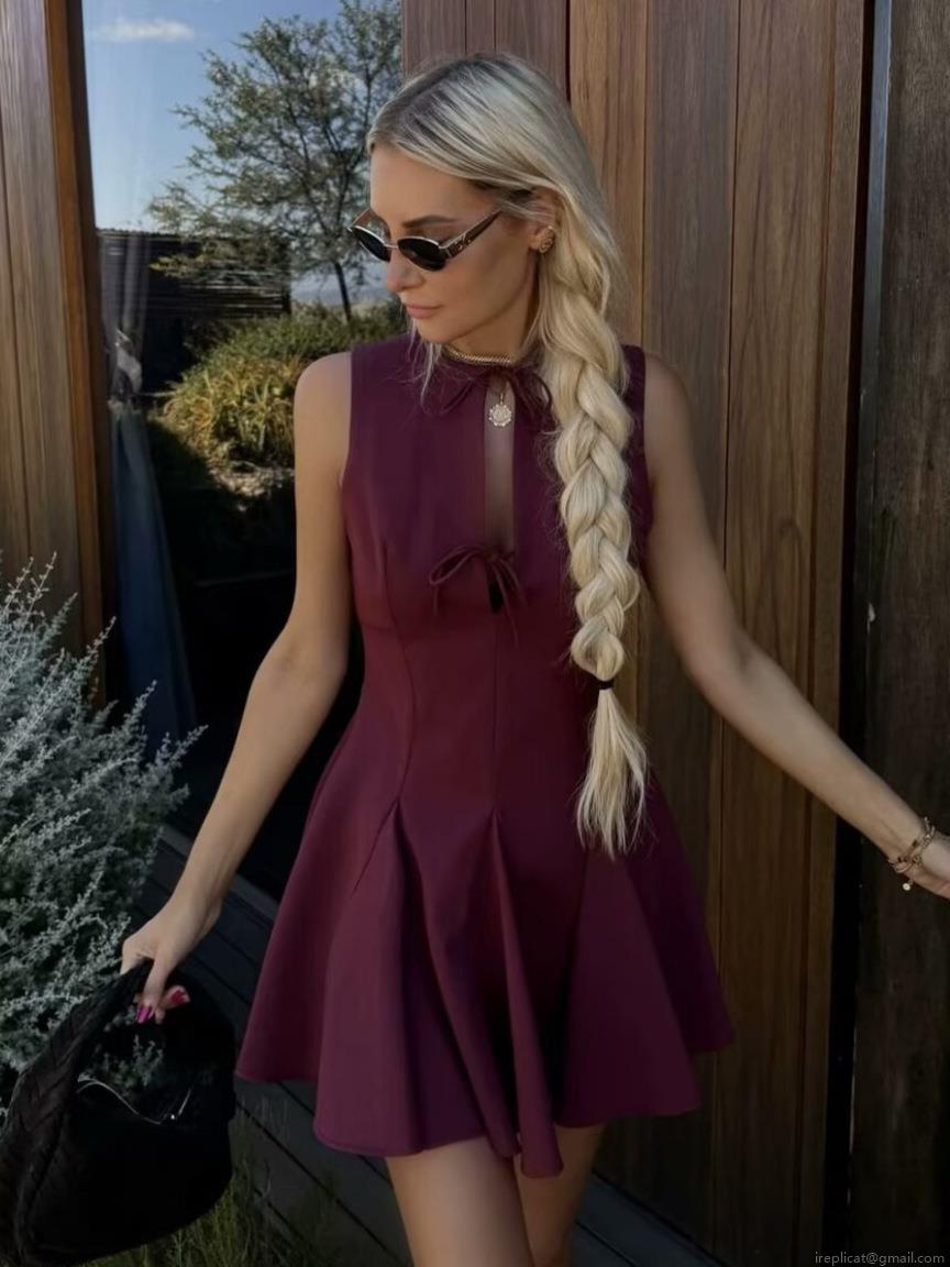 • Women Sleeveless Mini Dress 100% Polyester Bow Tie Cut-Out Pleated A-Line Summer Elegant Party Vacation Western Style Fashion Short Dress