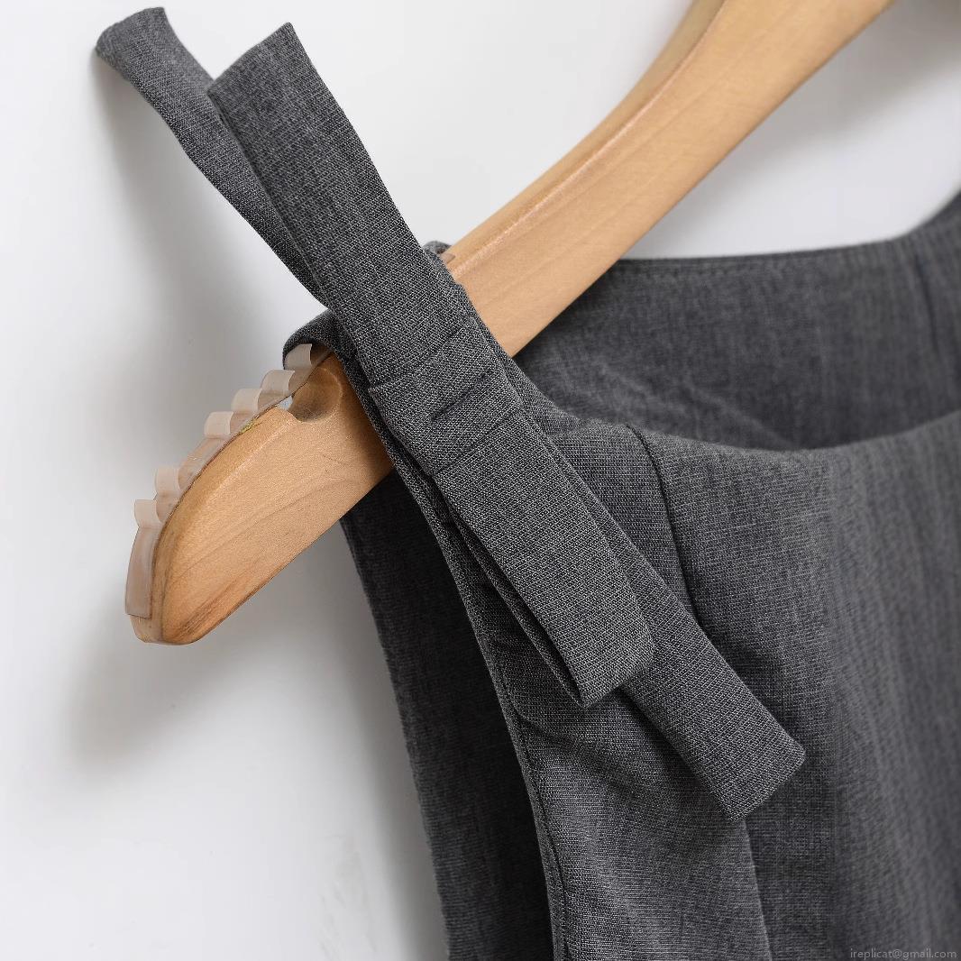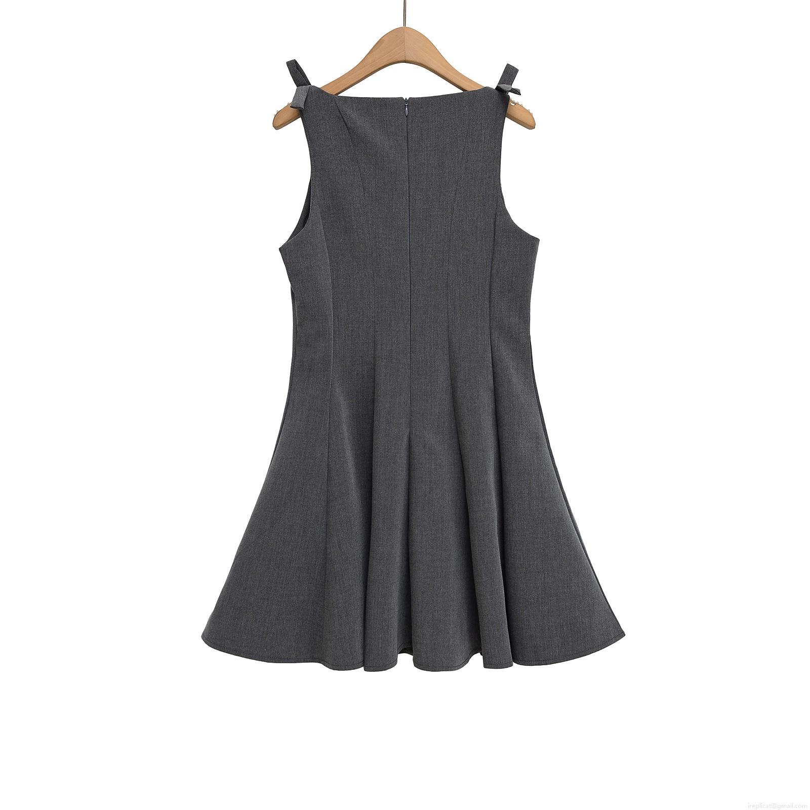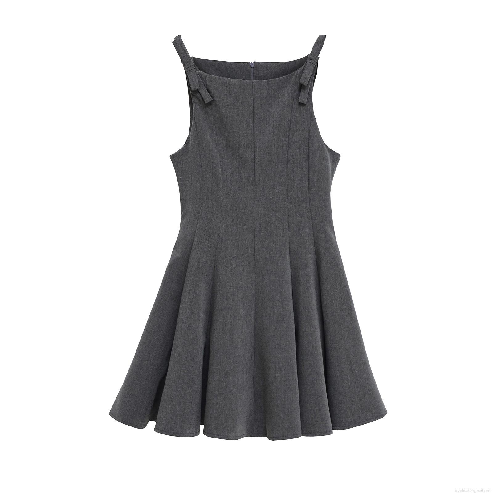 Women Sleeveless Mini Dress Dark Grey Bow Shoulder Detail A-Line Summer Casual Streetwear Short Dress In Regenerated Cellulose Fiber Blend