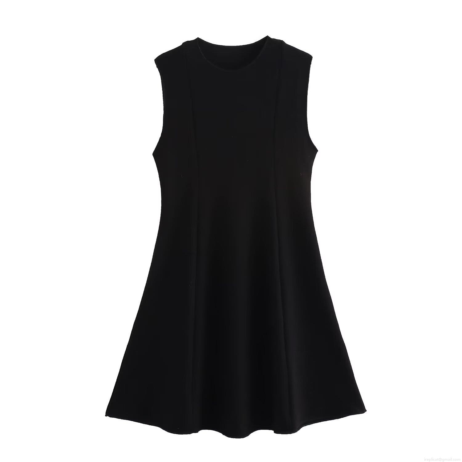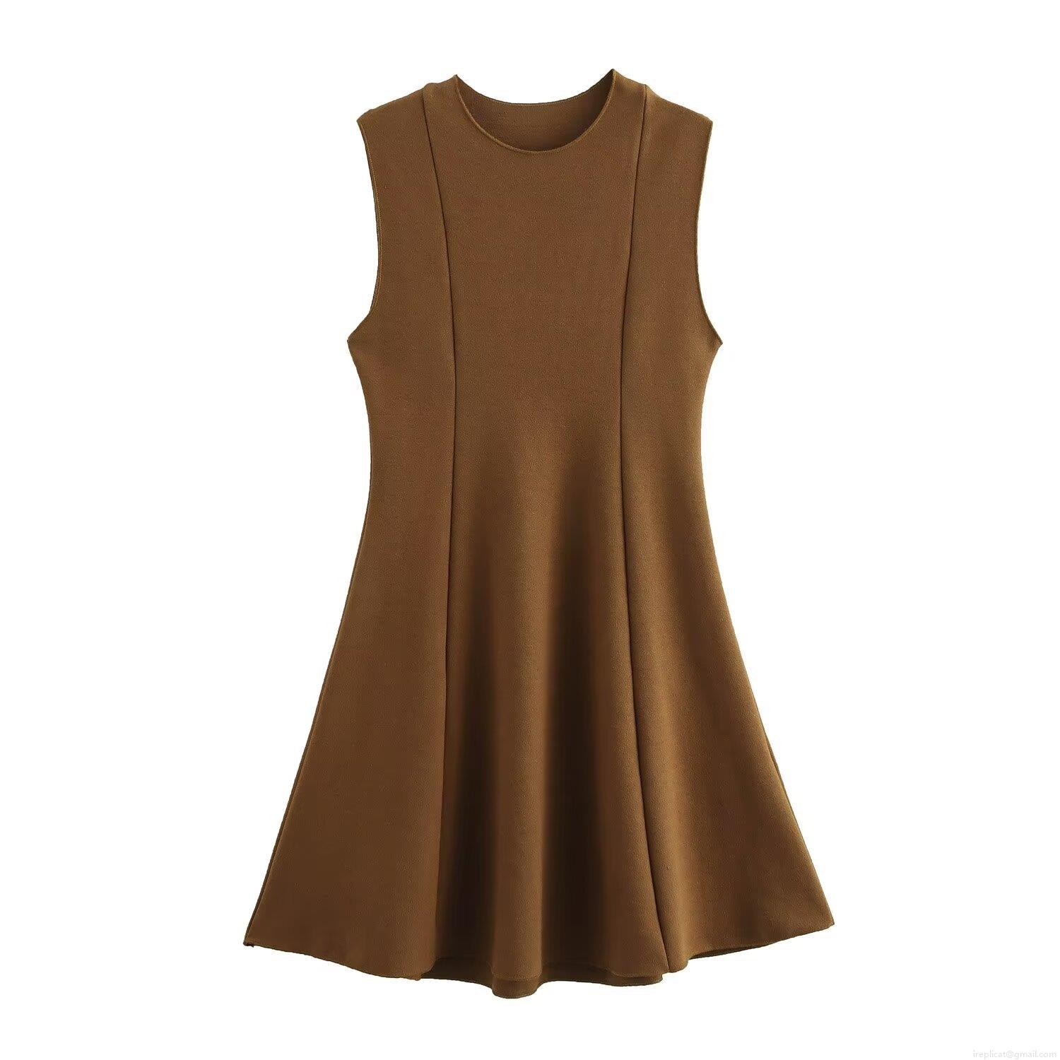 • Women Sleeveless Skater Mini Dress Knit Polyester Elastic Round Neck A-Line Solid Color Chic Streetwear Party Outfits