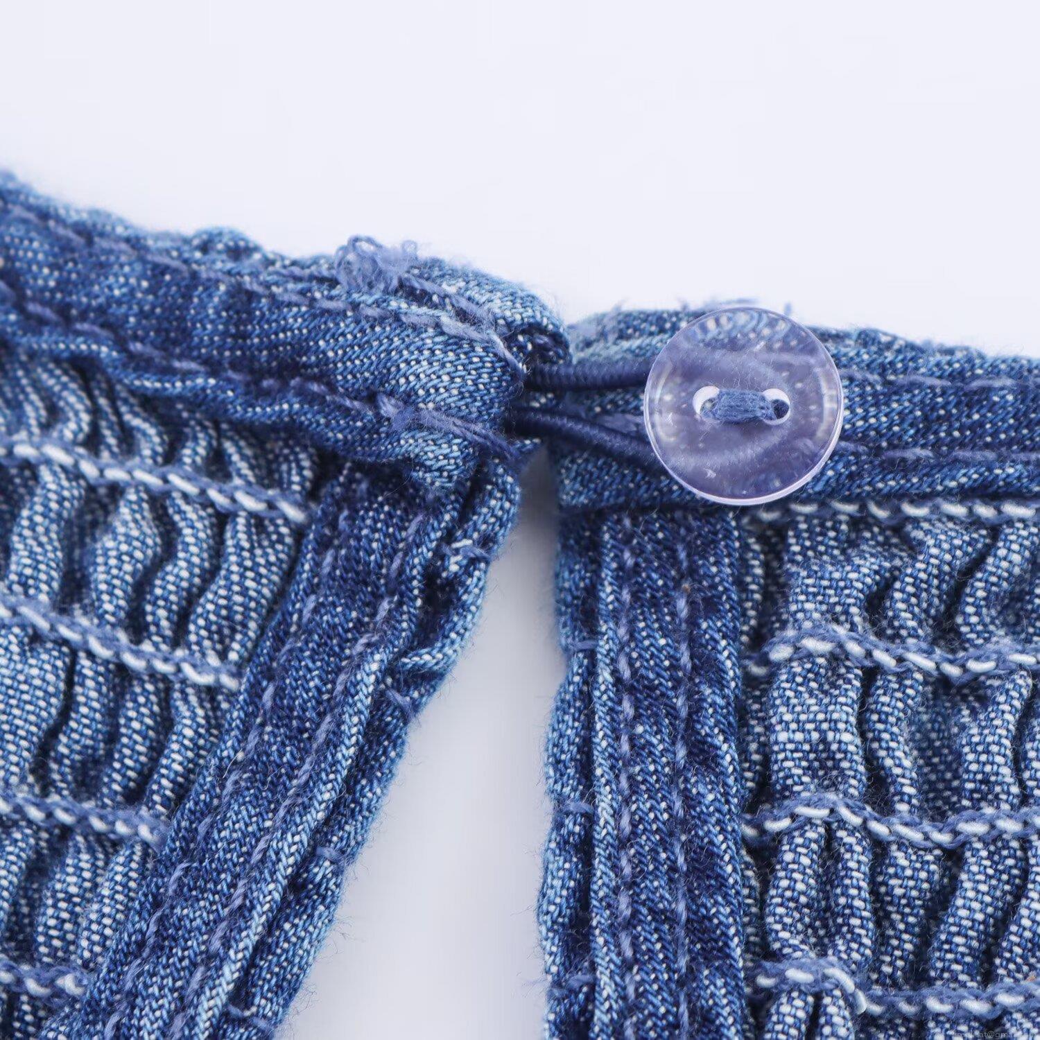 • Women Sleeveless Smocked Mini Dress Denim Effect Round Neck Back Button A-Line Layered Honeycomb Decor Summer Party Vacation Elegant Short Dress Ladies