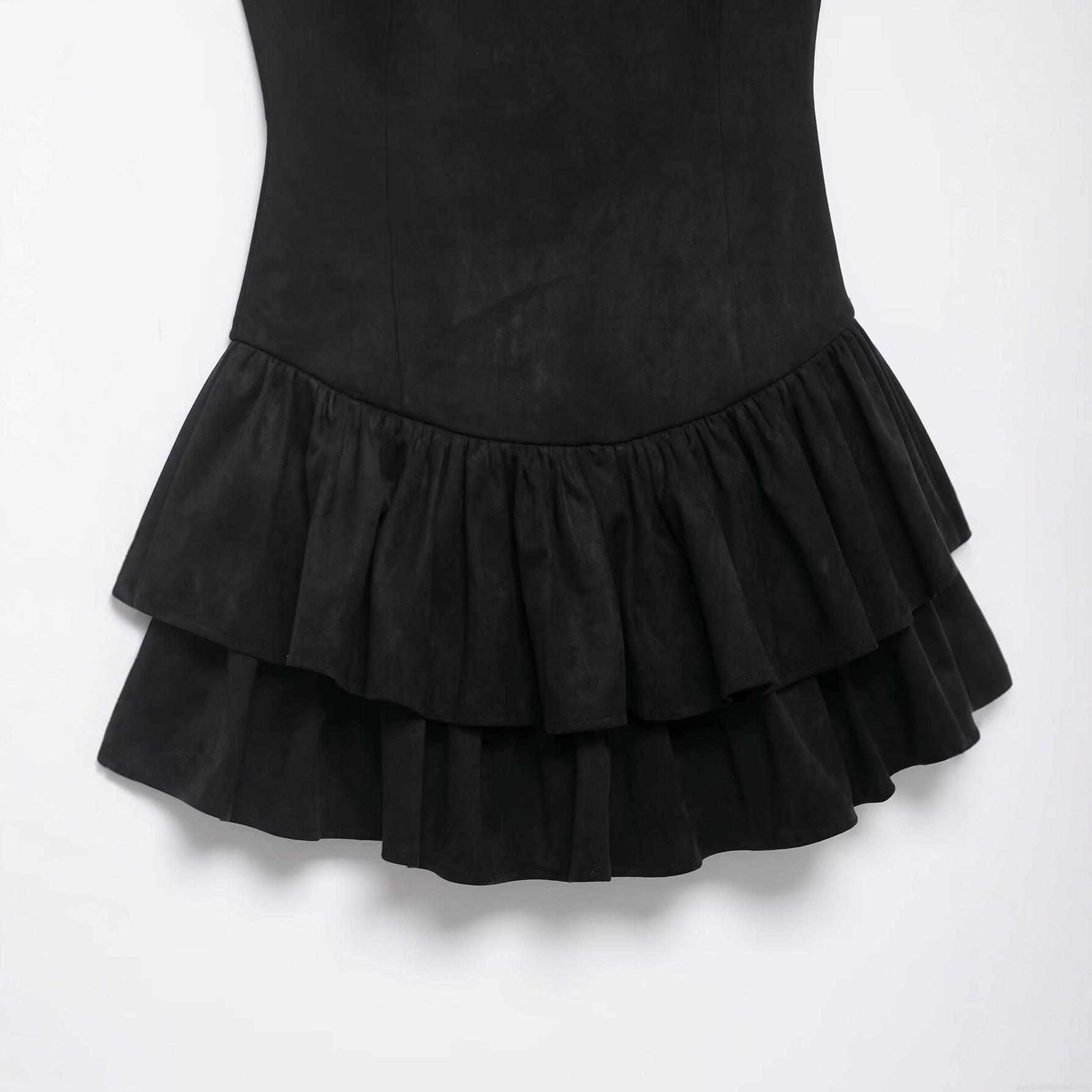 • Women Sleeveless Suede Mini Dress Layered Ruffle Hem Round Neck Back Zipper Sexy Slim Fit Party Evening Dress Clubwear For Women