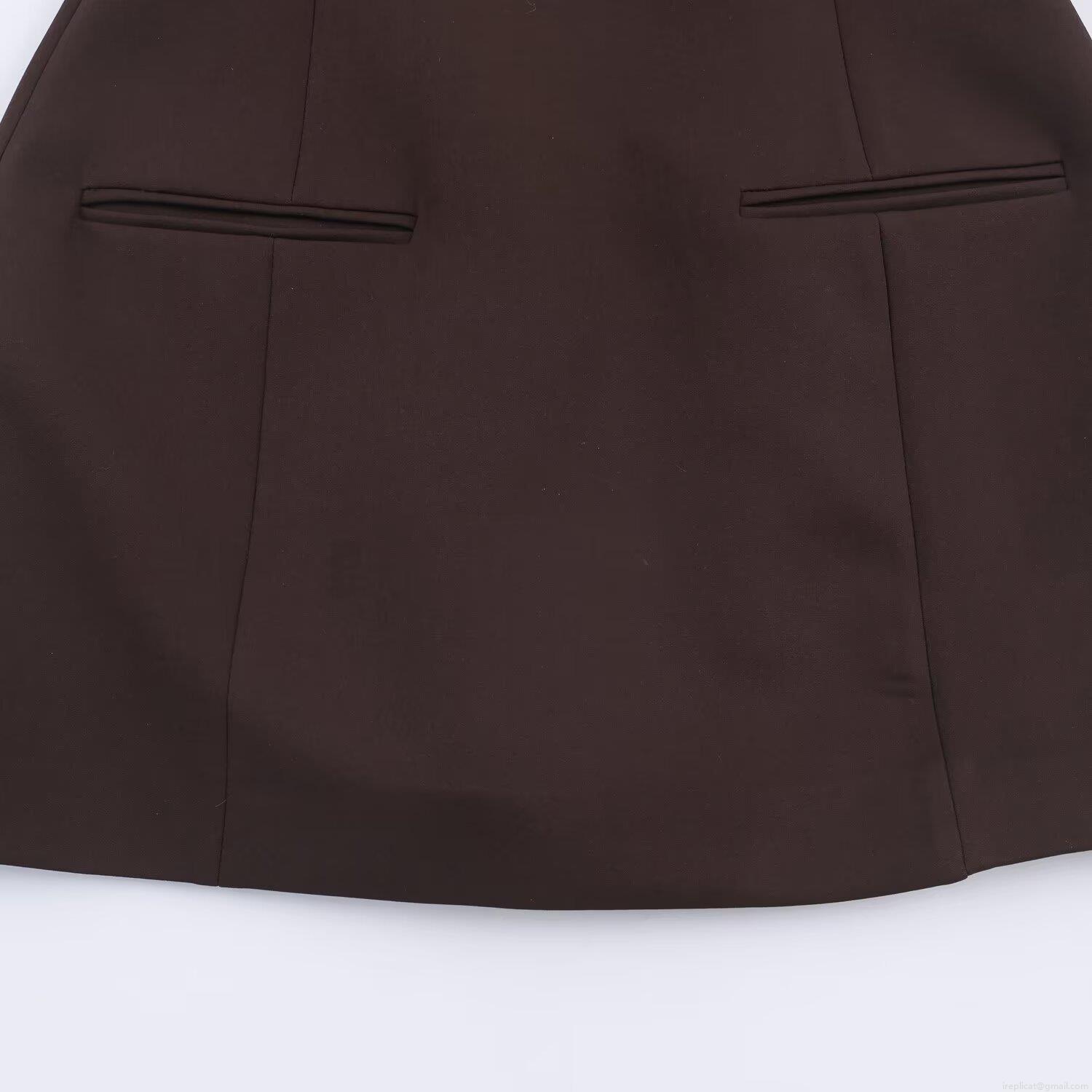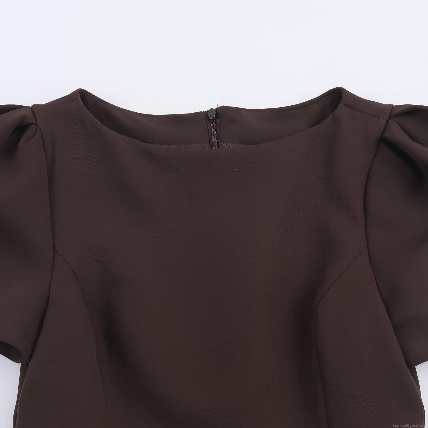 Solid Color, Pleats, Puff Sleeves, Invisible Zipper, Decorative Pockets