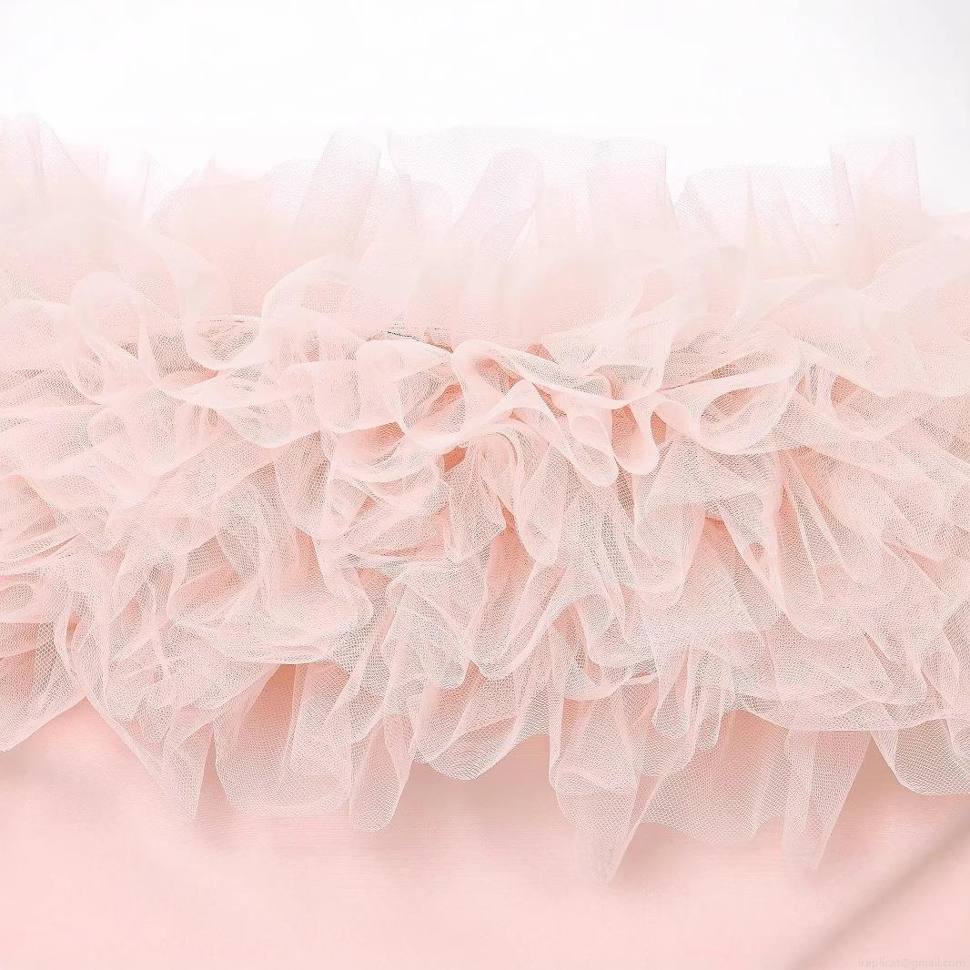 Solid Color, Pleats, Mesh, Strapless, Off-the-shoulder Neckline, Multi-layer Stacking
