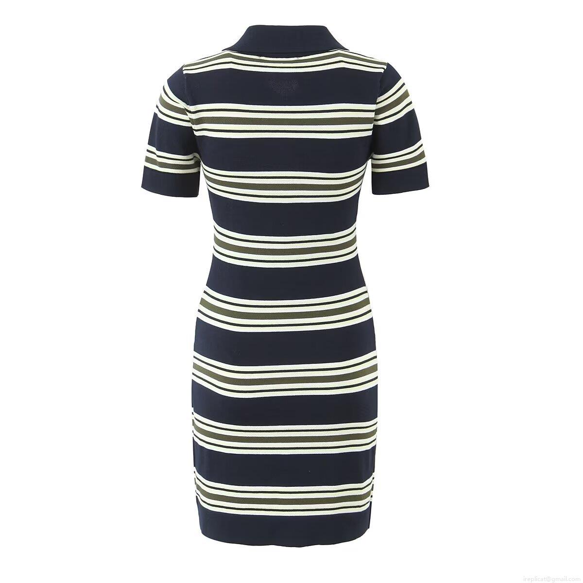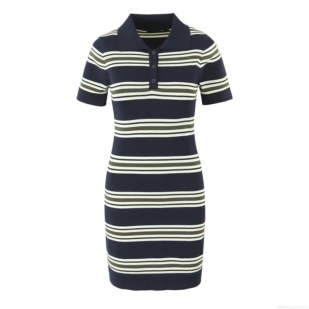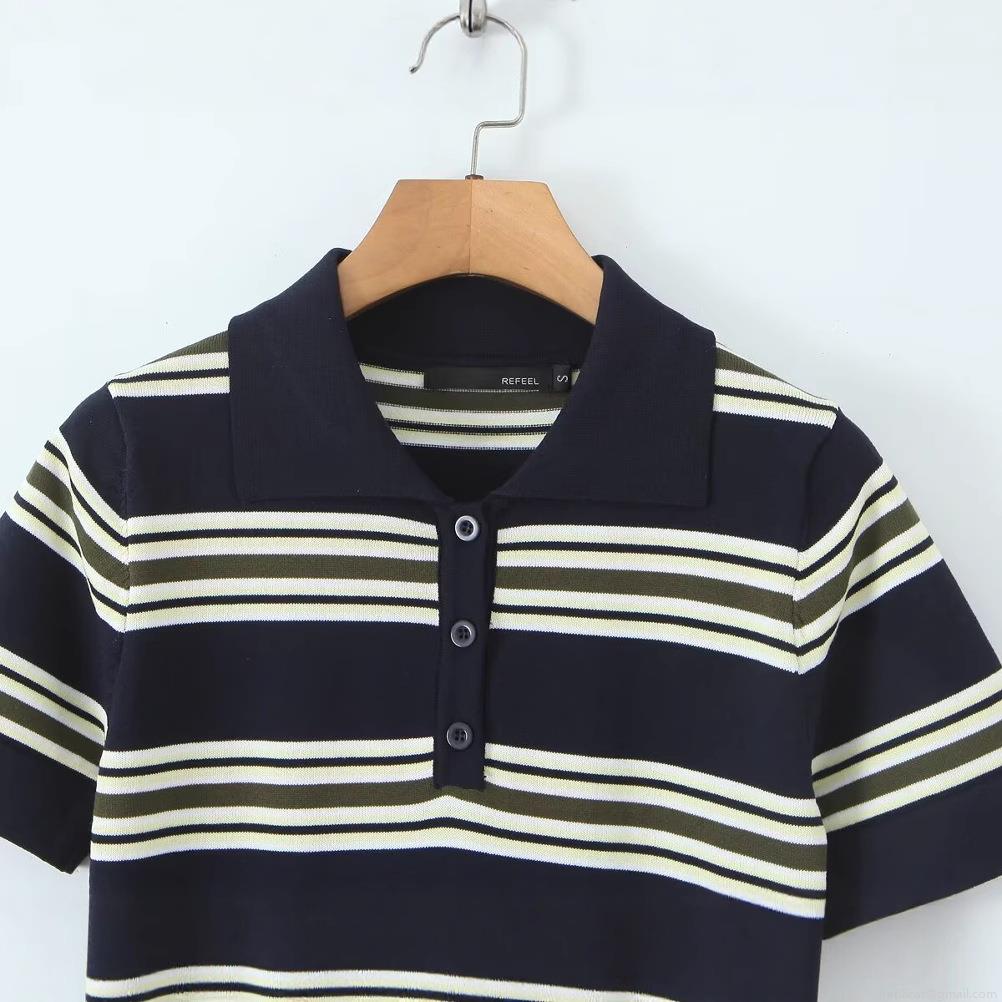 Women Striped Polo Collar Knit Dress Short Sleeve Color Block Button Sheath Mini Dress Streetwear Slim Fit Summer Fashion Clothing