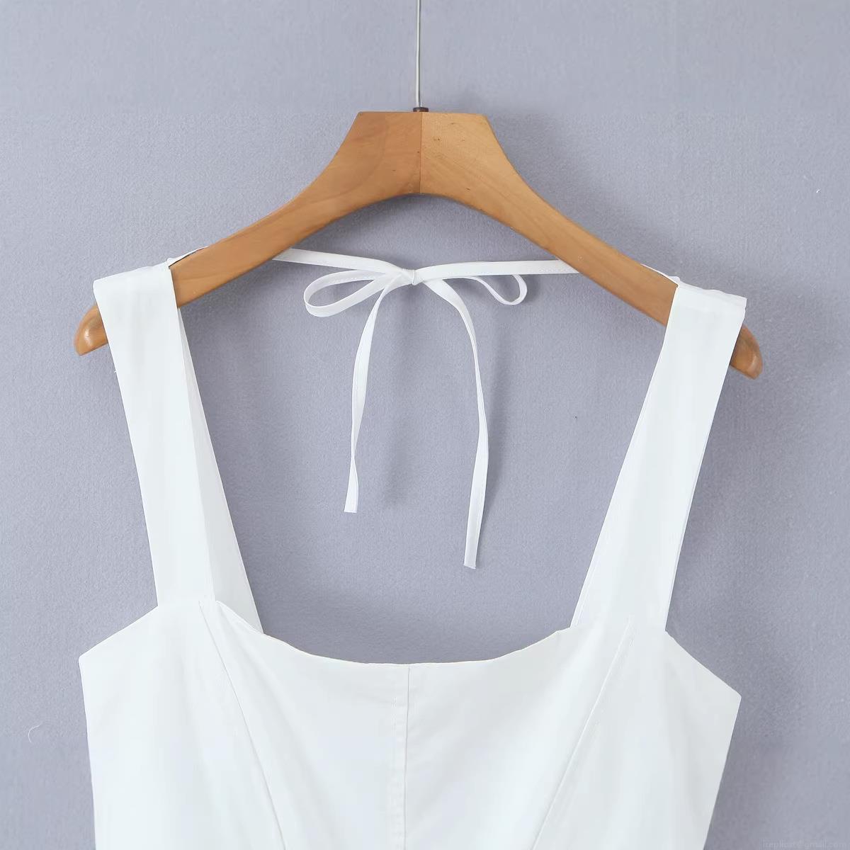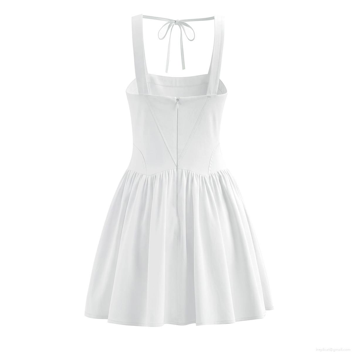 • Women Summer Cotton Suspender Dress Fashion Casual Square Neck Sleeveless Mini Dress Tie-Back Bow Design Slim Fit Back Zipper White Dress For Daily Street Vacation