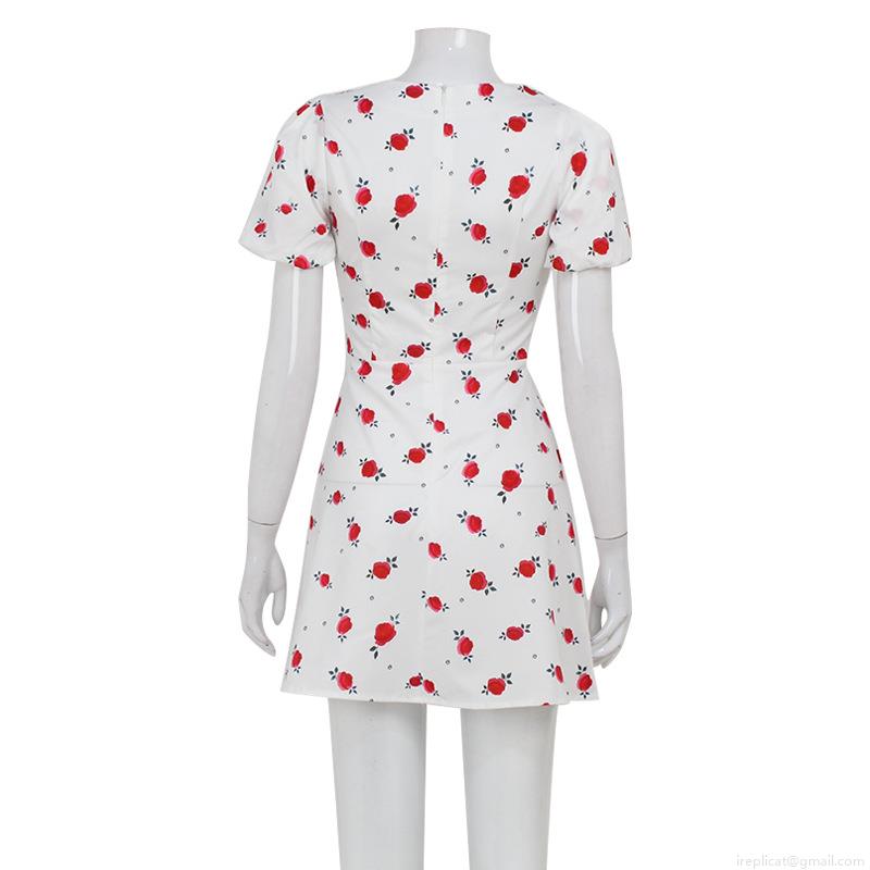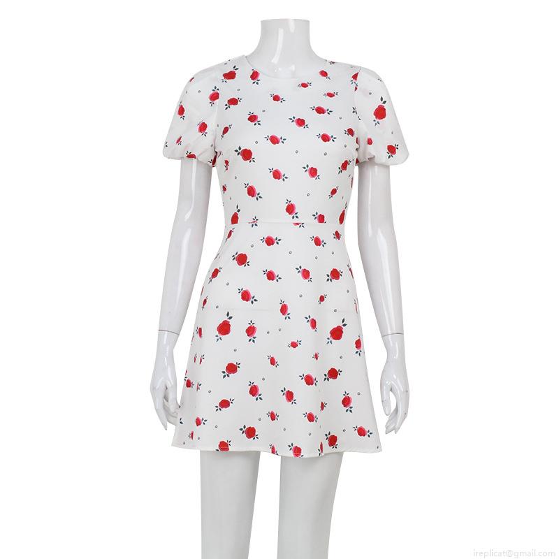 Rose, Polka Dots, Floral Pattern, Printing, A-line Skirt, Puff Sleeves, High-waisted