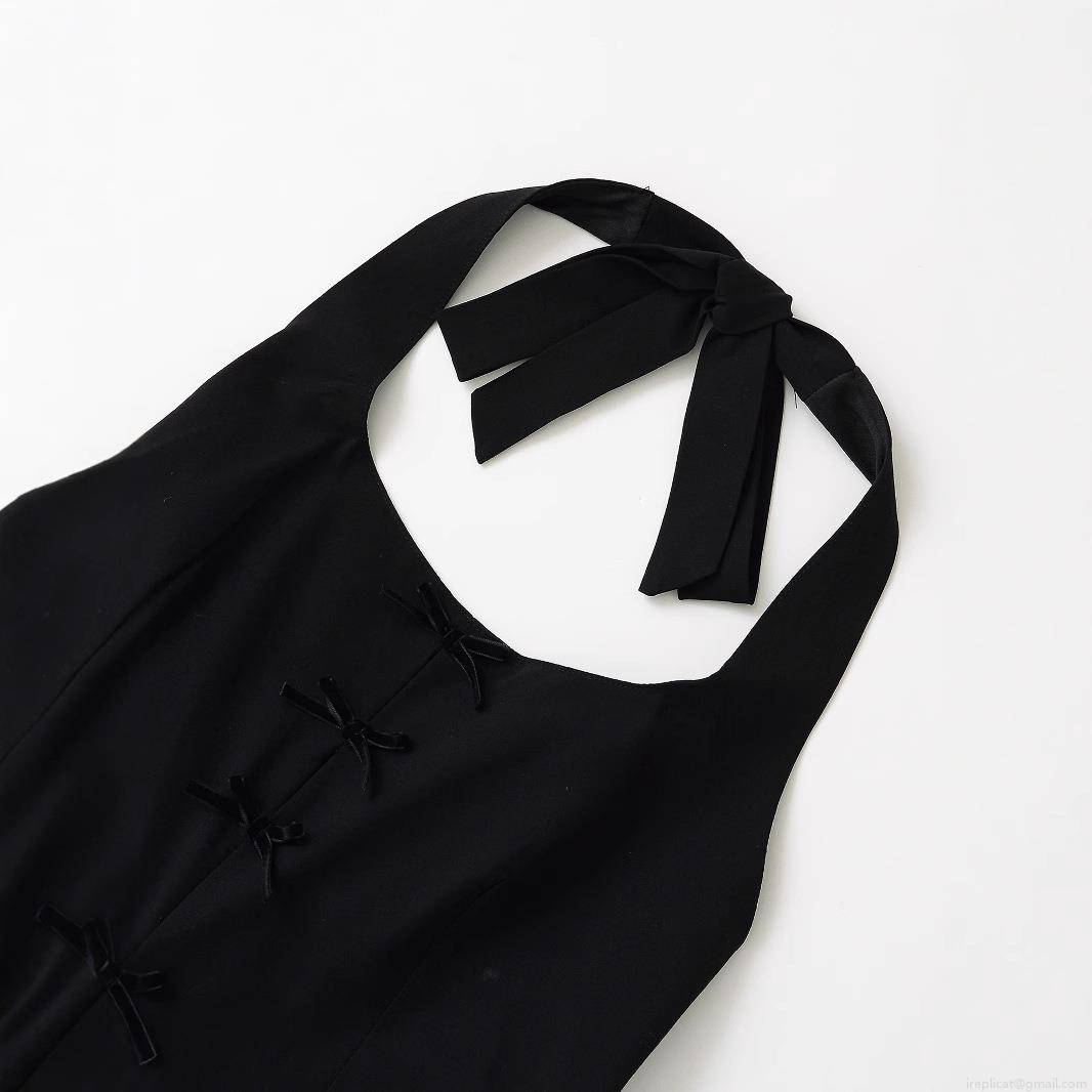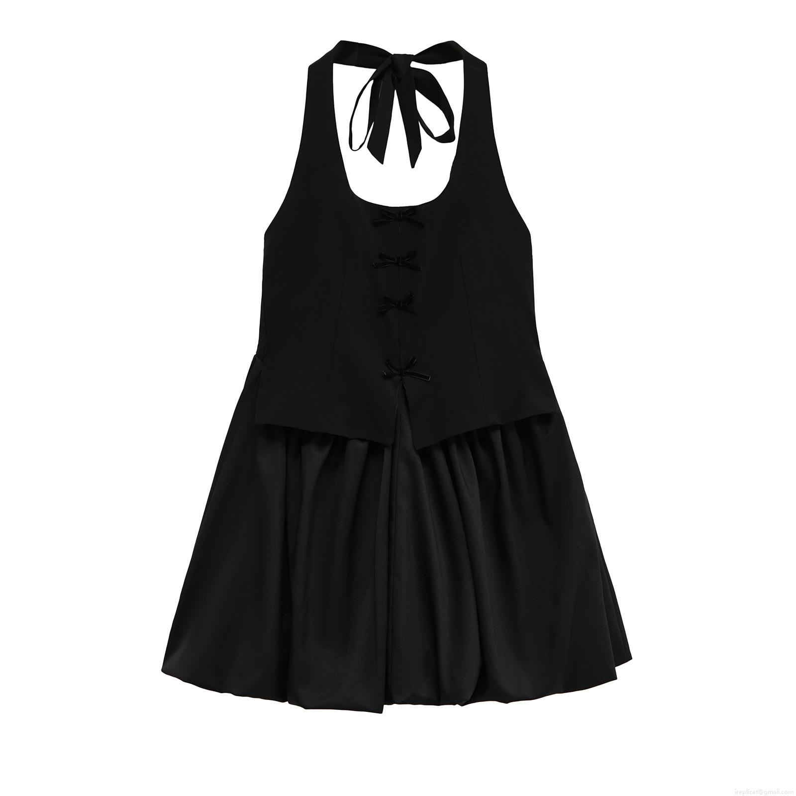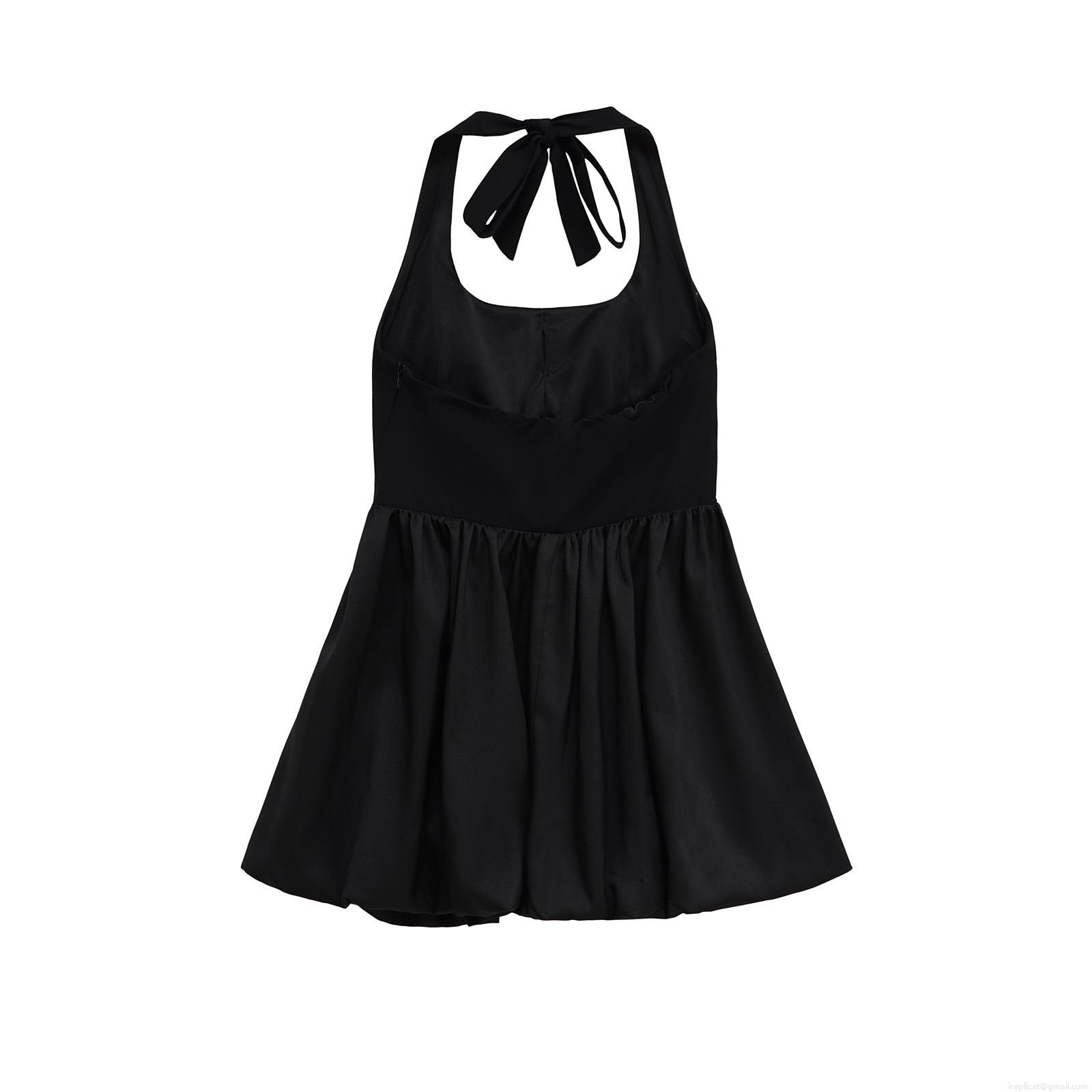 • Women Summer Halter Neck Bow Mini Dress Sexy Slim Fit Sleeveless A-Line Puff Dress Polyester Solid Black Street Style Party Clubwear Elegant Sundress