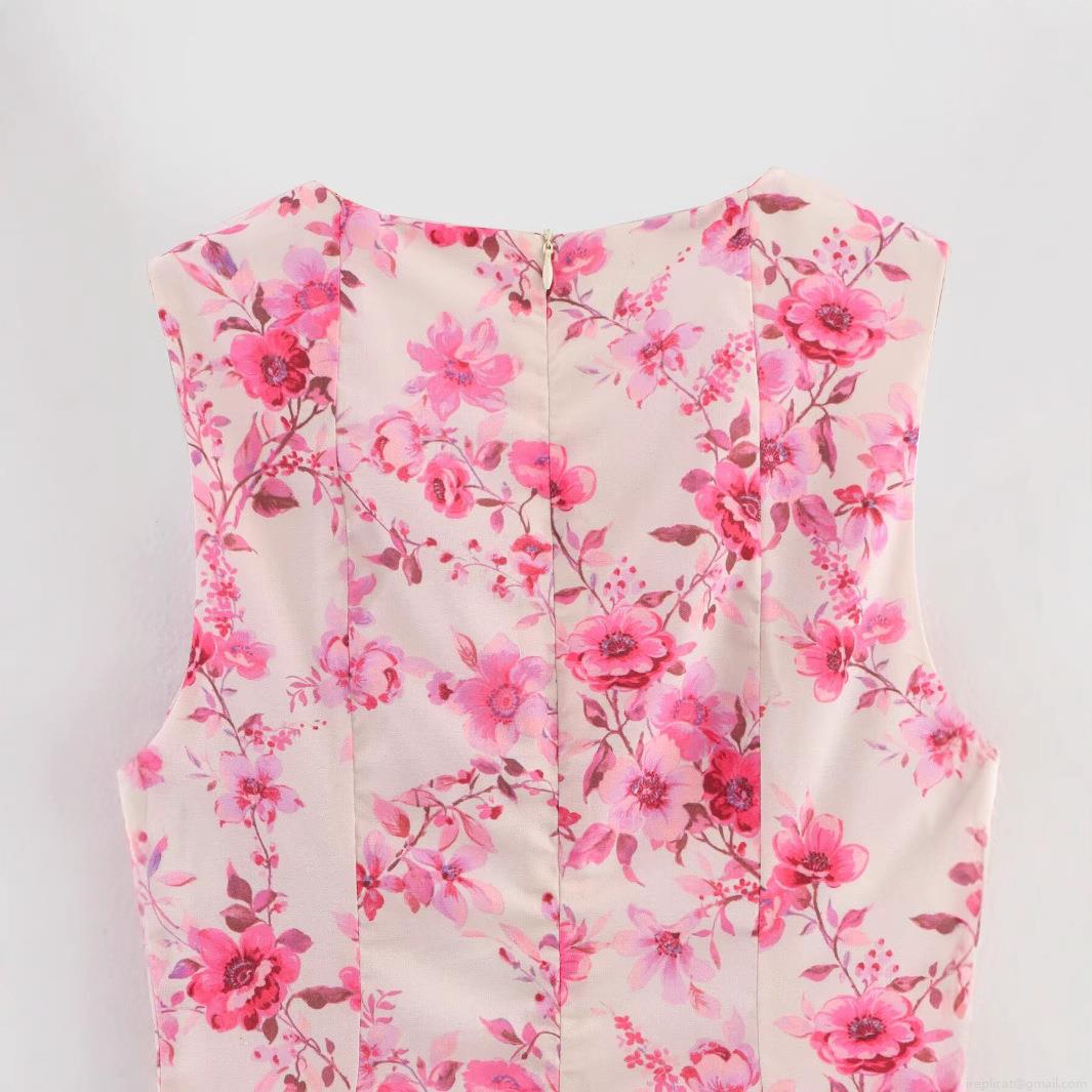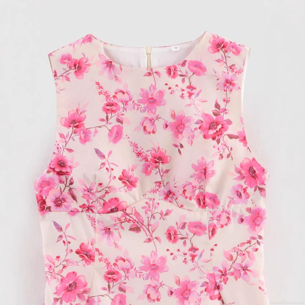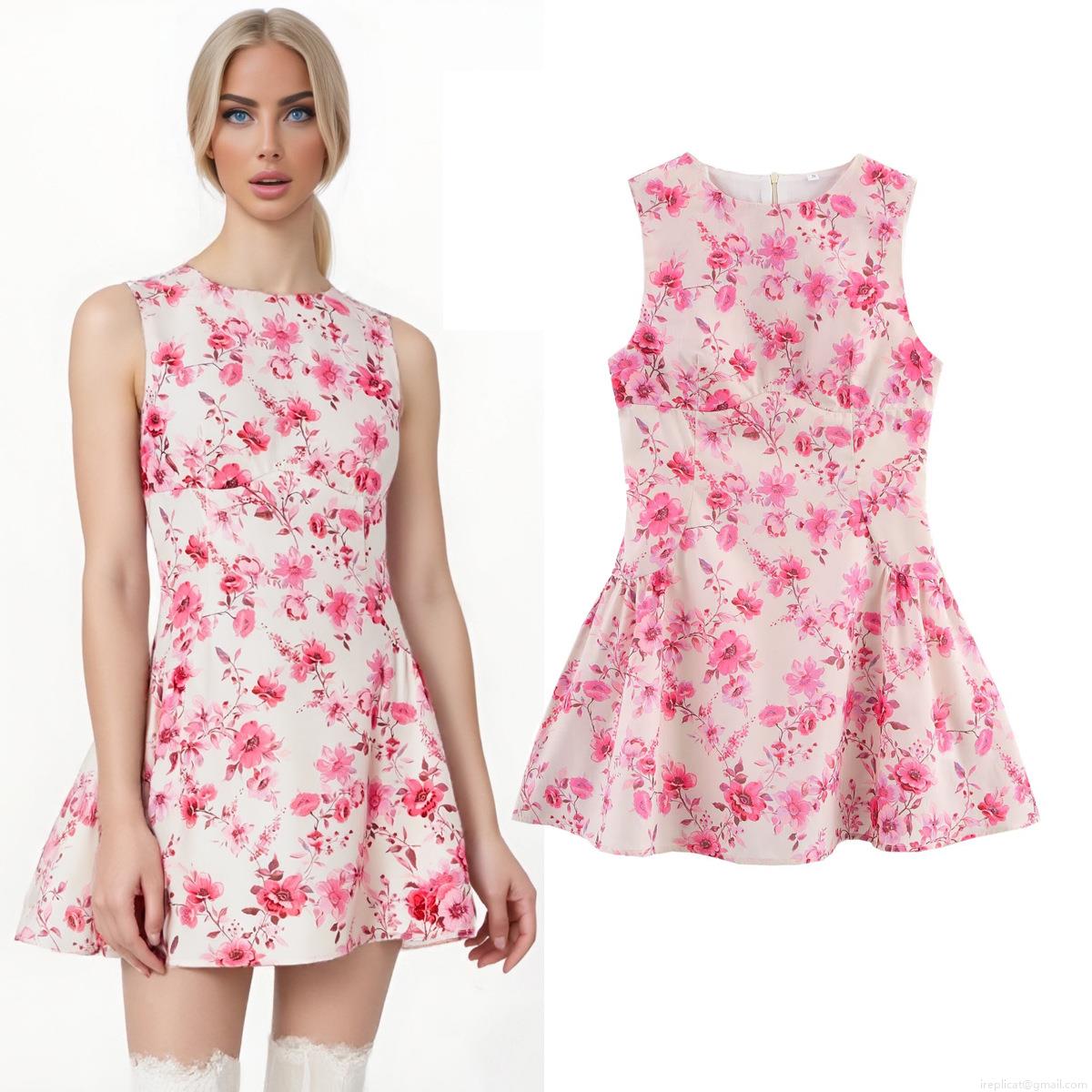 • Women Summer Round Neck Sleeveless Floral Print Mini Dress Elegant A-Line Short Sundress With Back Zipper For Daily Vacation White Pink Polyester Dress