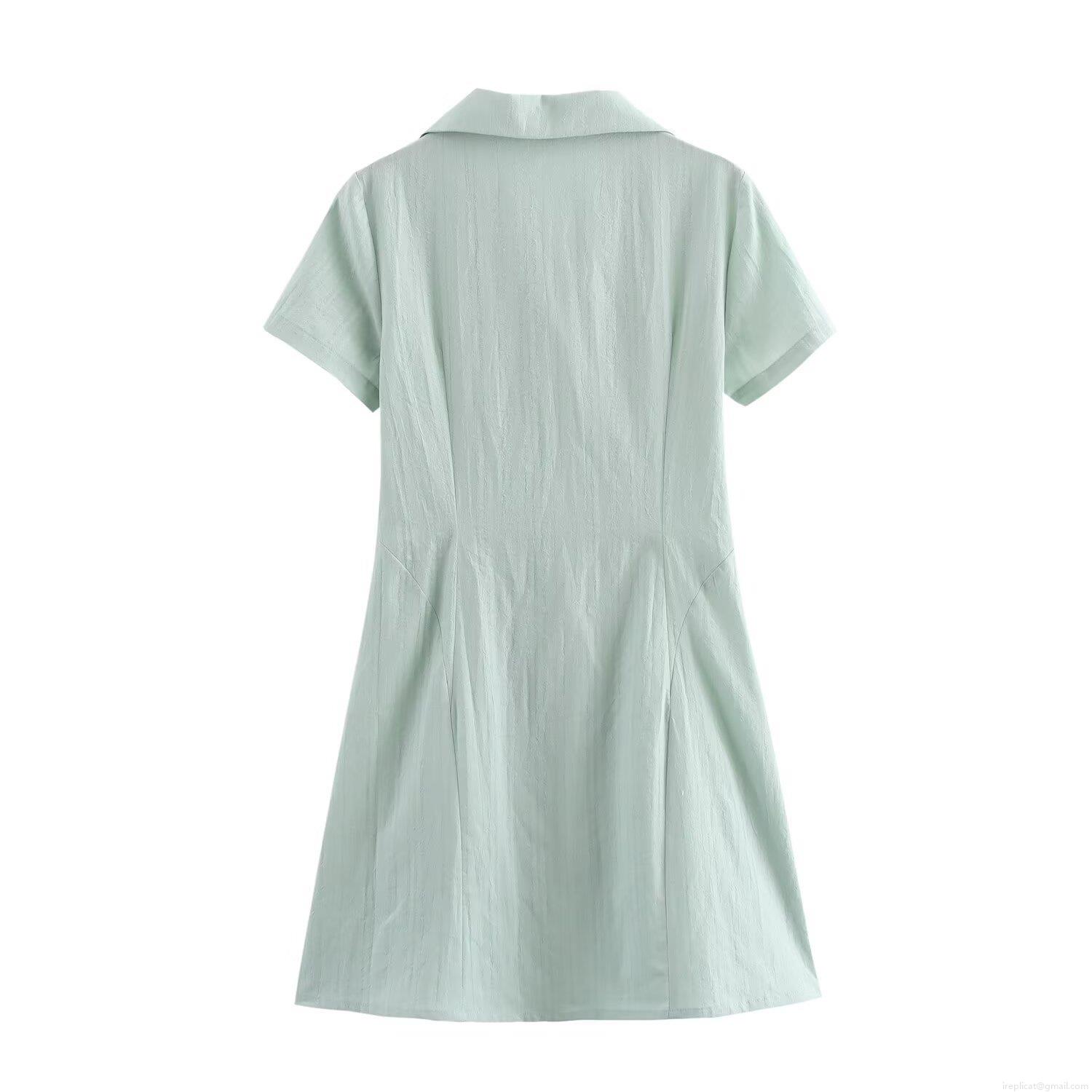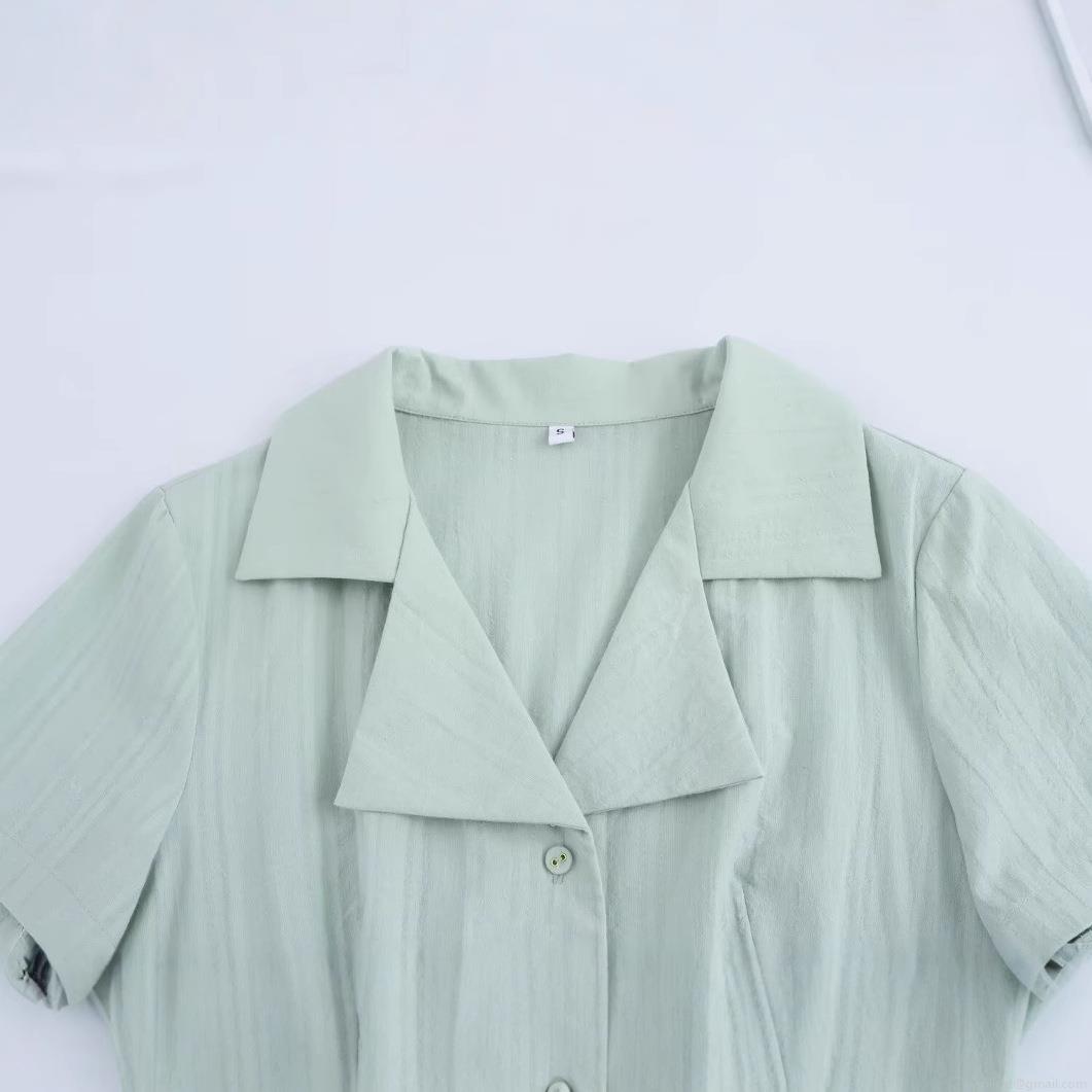 • Women Summer Shirt Dress Lapel Short Sleeve Single Breasted Mini A-Line Dress Textured Polyester Breathable Solid Color Casual Streetwear For Ladies