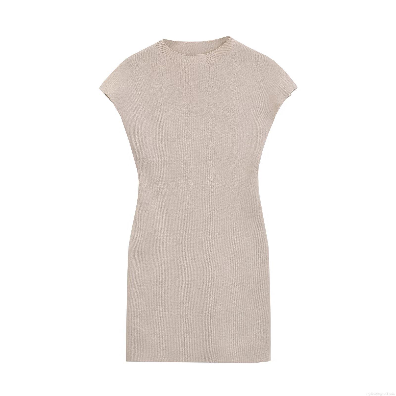 • Women Summer Sleeveless Ribbed Knit Mini Dress Slim Fit Round Neck Solid Color Stretchy Bodycon Tank Gown For Casual Party Fashion