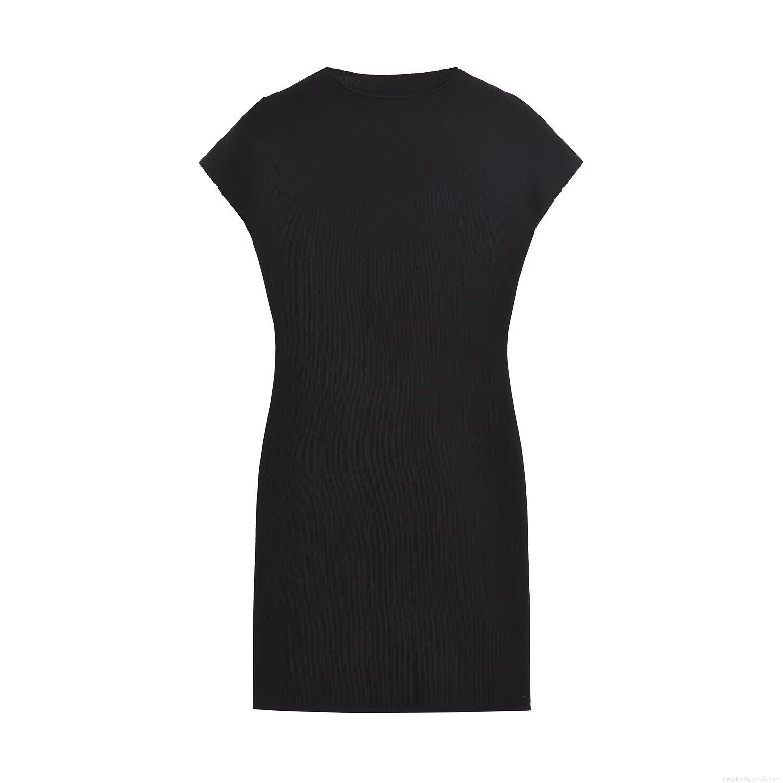 Women Summer Sleeveless Ribbed Knit Mini Dress Slim Fit Round Neck Solid Color Stretchy Bodycon Tank Gown For Casual Party Fashion