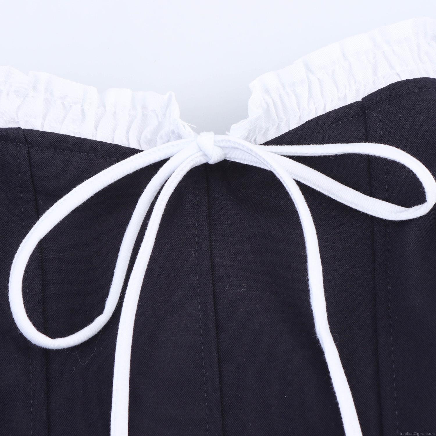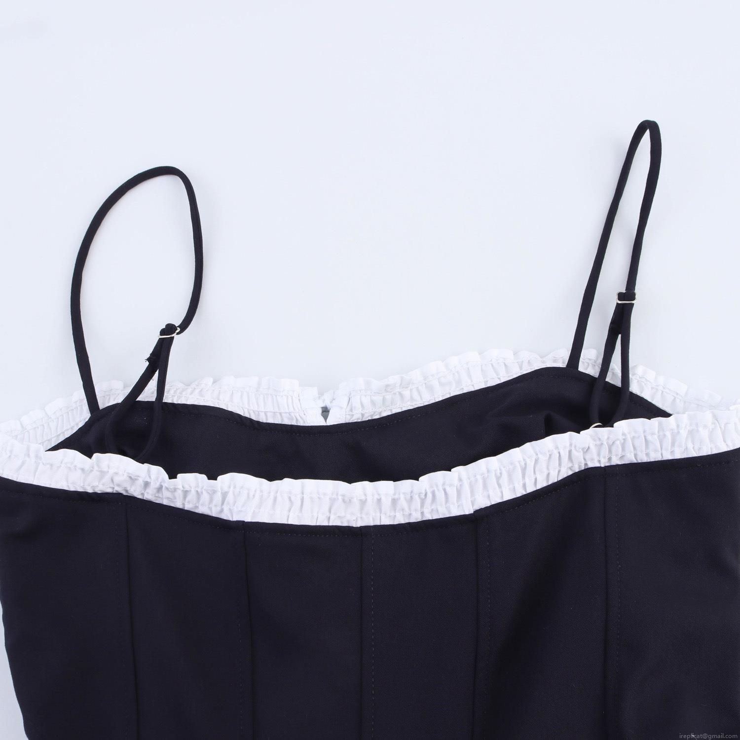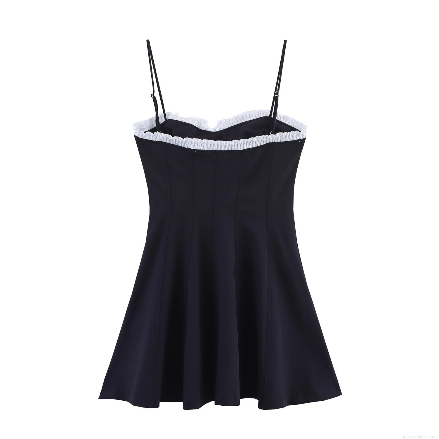 • Women Sweet Black A-Line Mini Dress White Ruffle Trim Bow Camisole Summer Party Dress High Waist Sleeveless Slim Fit Sexy Clubwear Dress