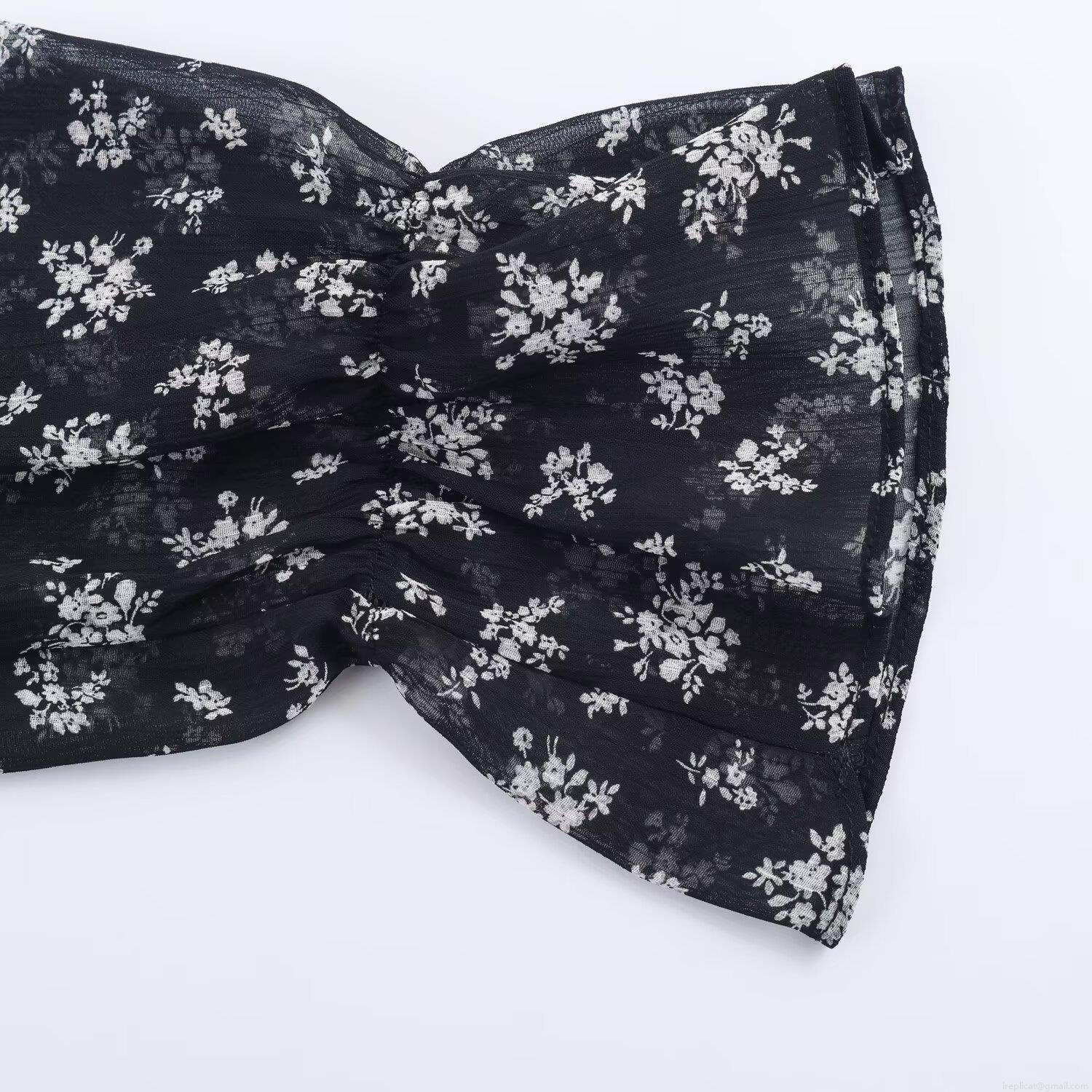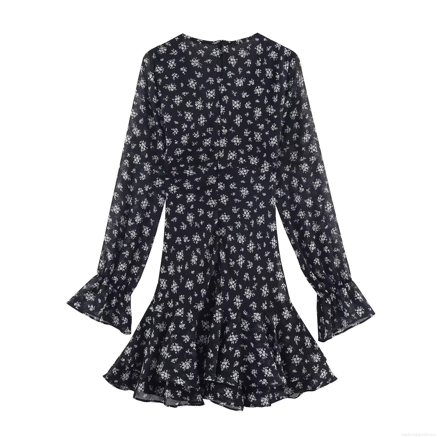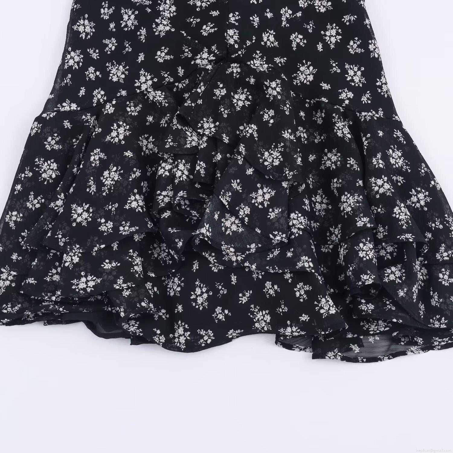 Wood Ear Edge, Floral Pattern, Ruffles, V-neck, Layered Decoration, Small Floral Print
