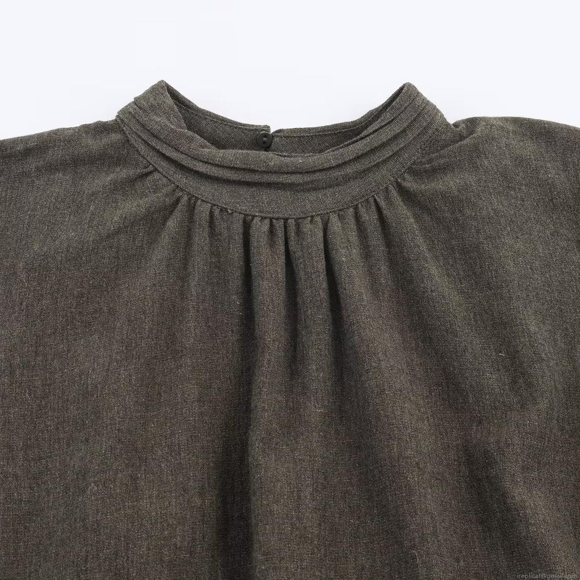 • Women Sweet Grey Balloon Mini Dress Short Sleeve Pleated Half High Neck Elastic Polyester Casual Winter Loose Fit Dress For Lady