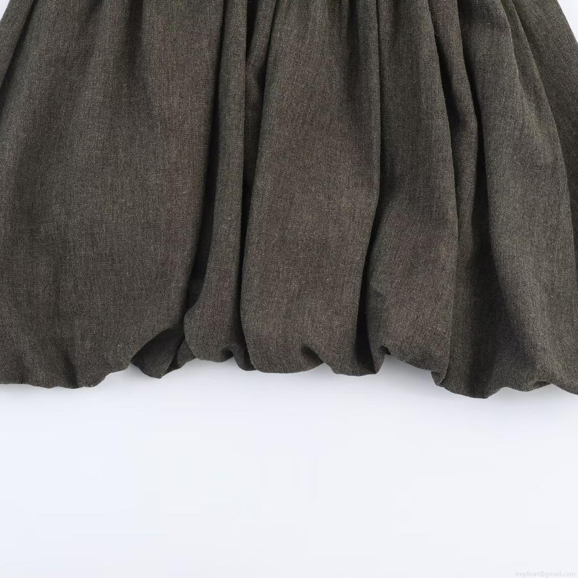 Solid Color, Splice, Pleats, Waist shaping, Lanterns