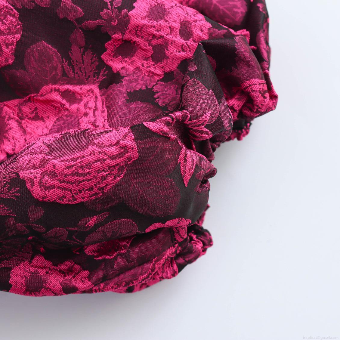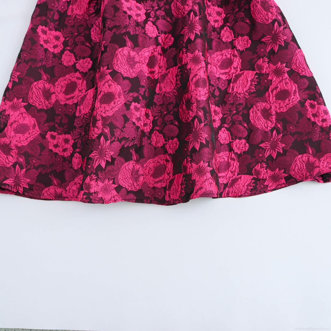 • Women Sweet Jacquard Off-The-Shoulder Mini Dress Rose Red Floral Puff Sleeve High Waist A-Line Party Dress Elegant Summer Short Dress For Ladies