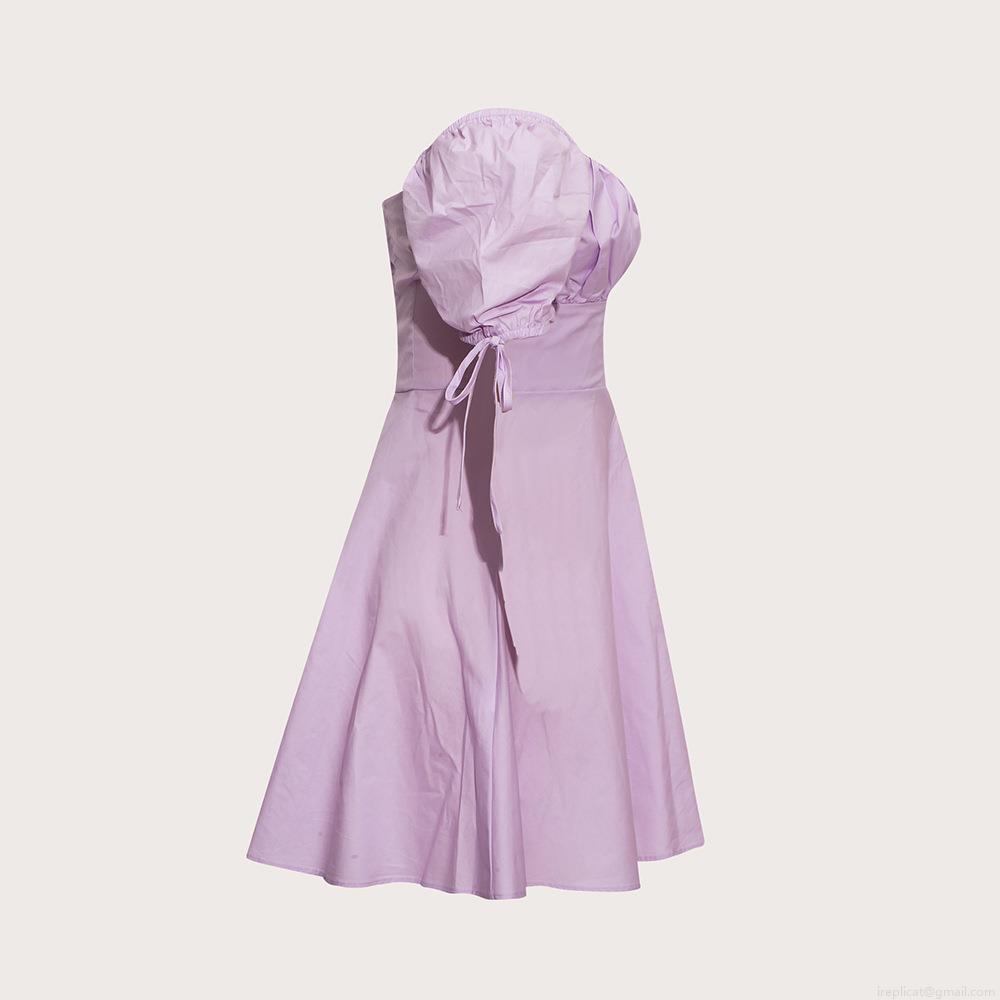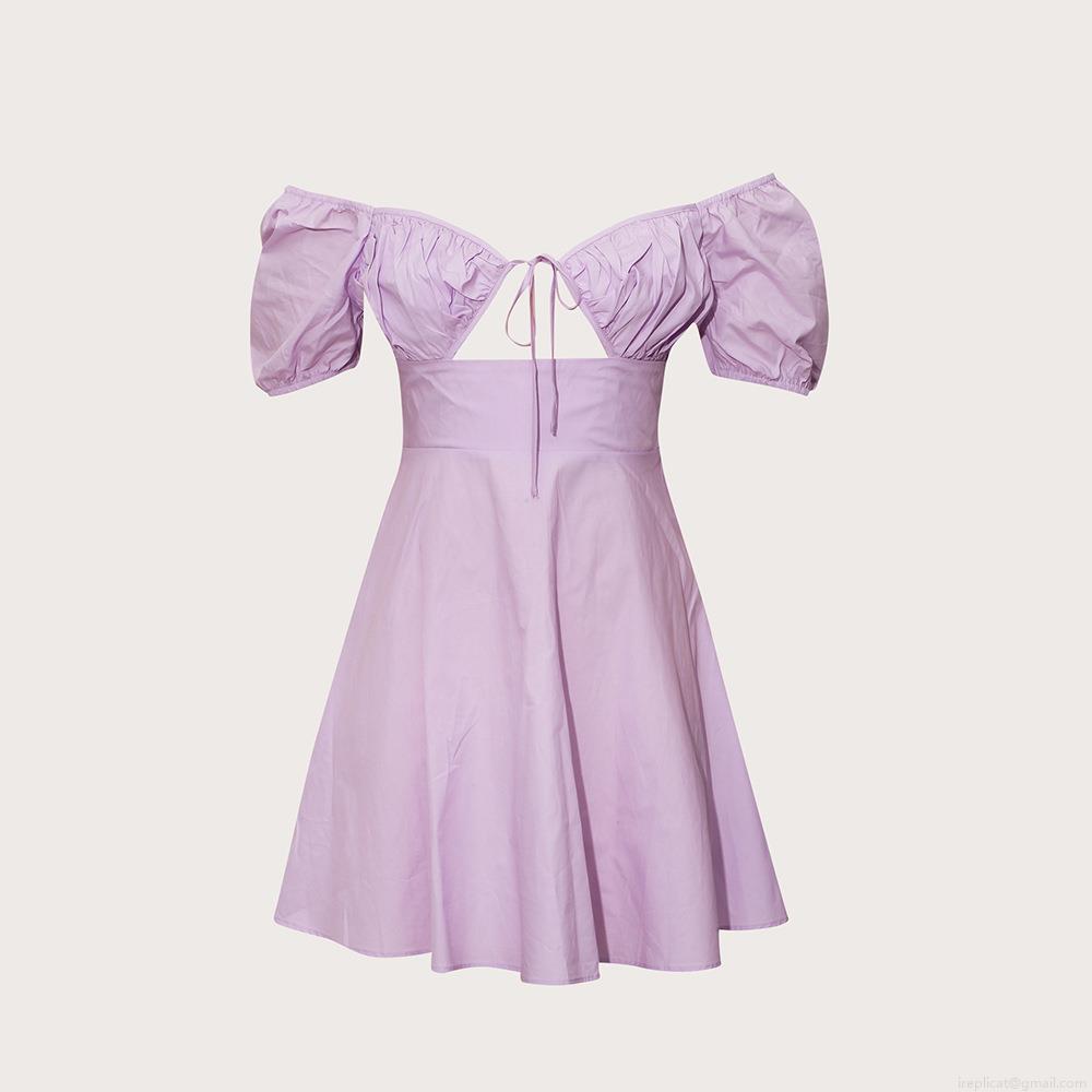 • Women Sweet Light Purple Puff Sleeve Mini Dress Sexy V-Neck Cutout Tie Front Slim Fit Cotton Blend Short Sleeve Dress For Summer Daily Party Wear