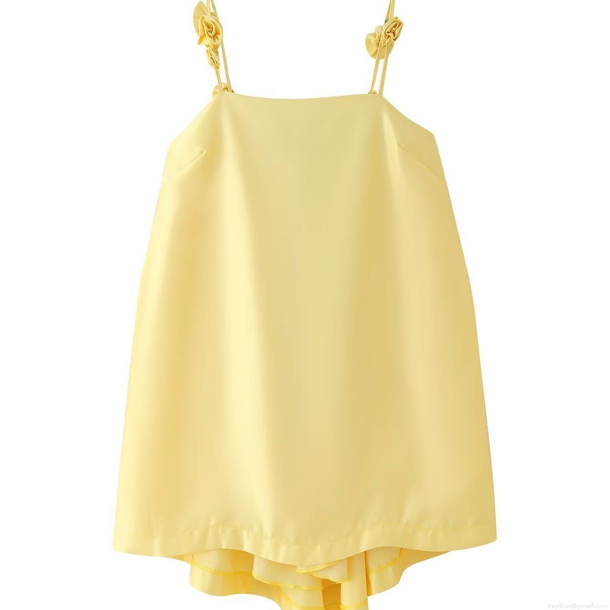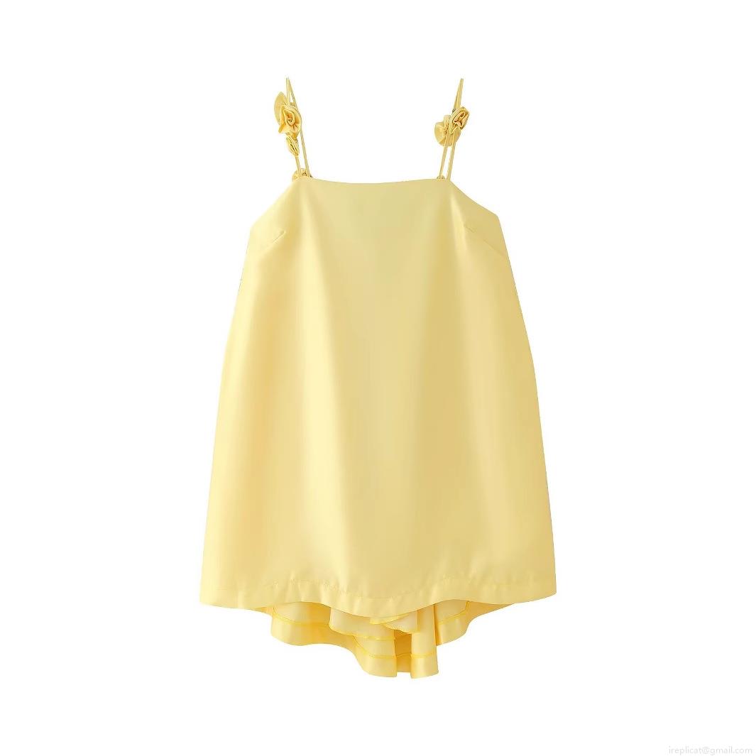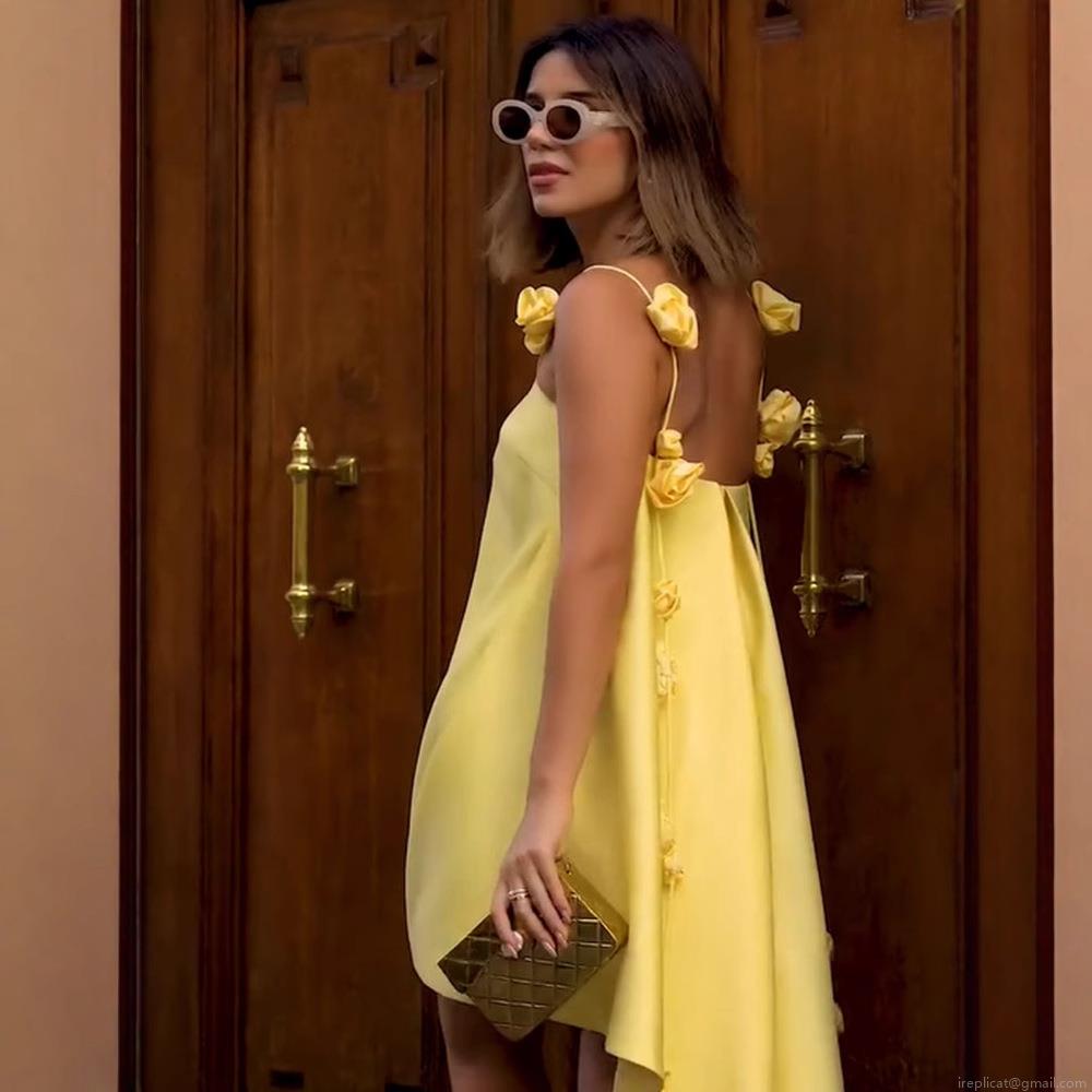 • Women Sweet Satin Cami Dress 3D Flower Decoration Sleeveless Mini Dress Elegant Backless Party Dress For Summer Vacation Ruffle Hem Dress