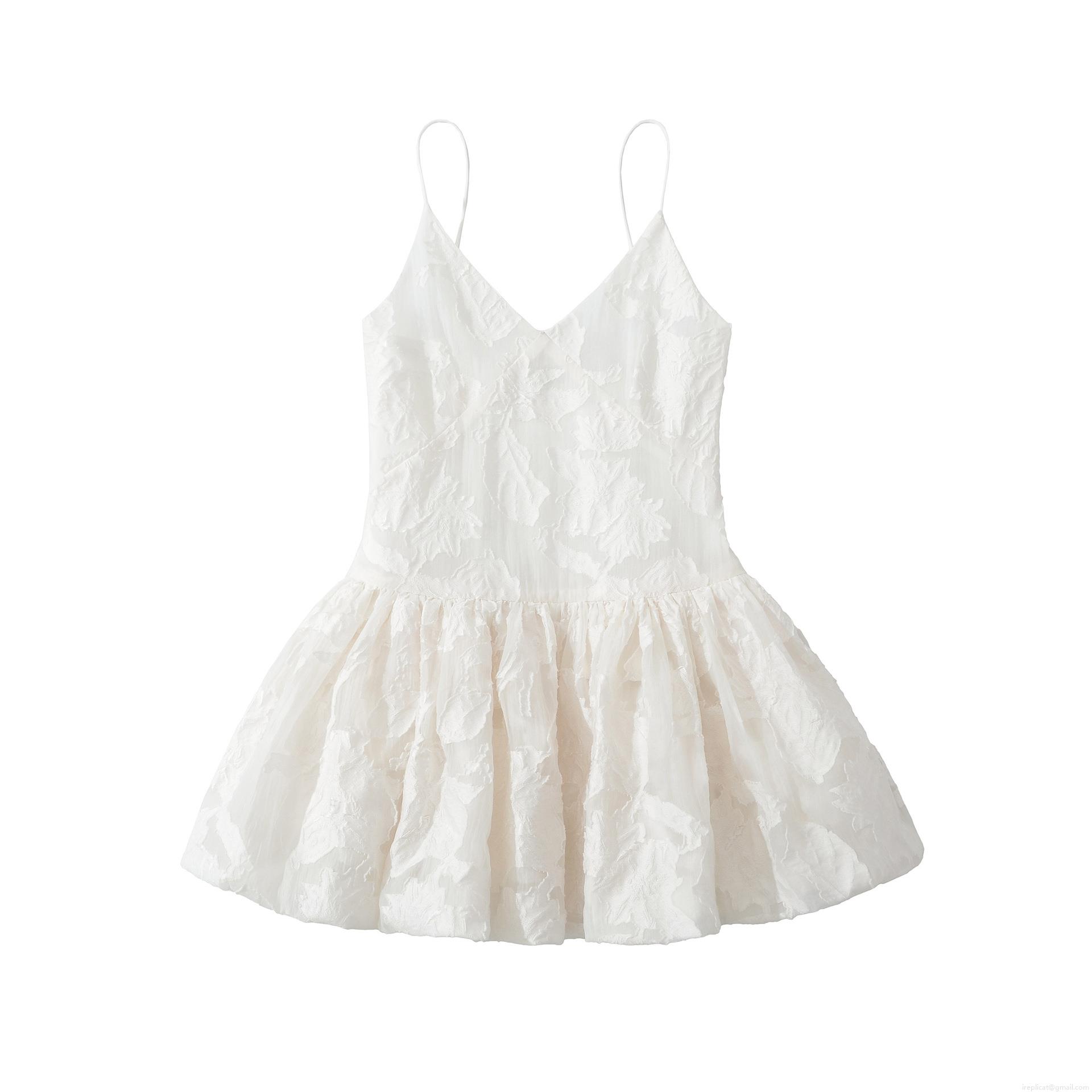 Flowers, V-neck, Backless, 3d Jacquard, Jacquard Texture, Thin Straps, Puffy Skirt