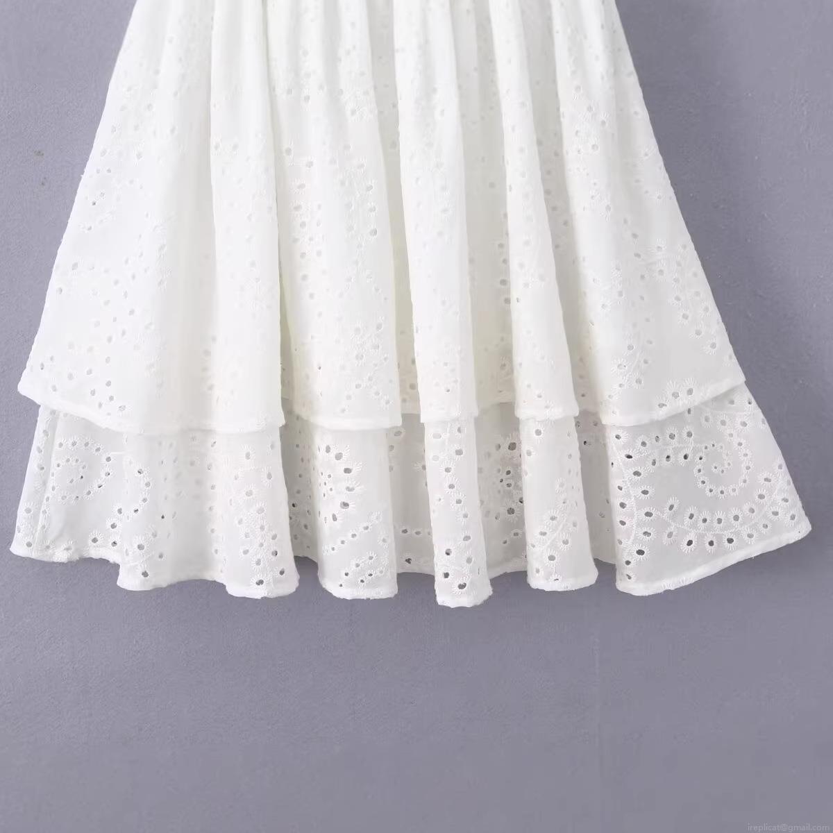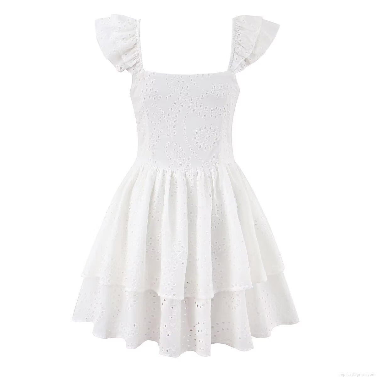 Embroidery, Hollow Out, Ruffles, Openwork Embroidery, Cake Skirt, Floral Pattern, Flying Sleeves