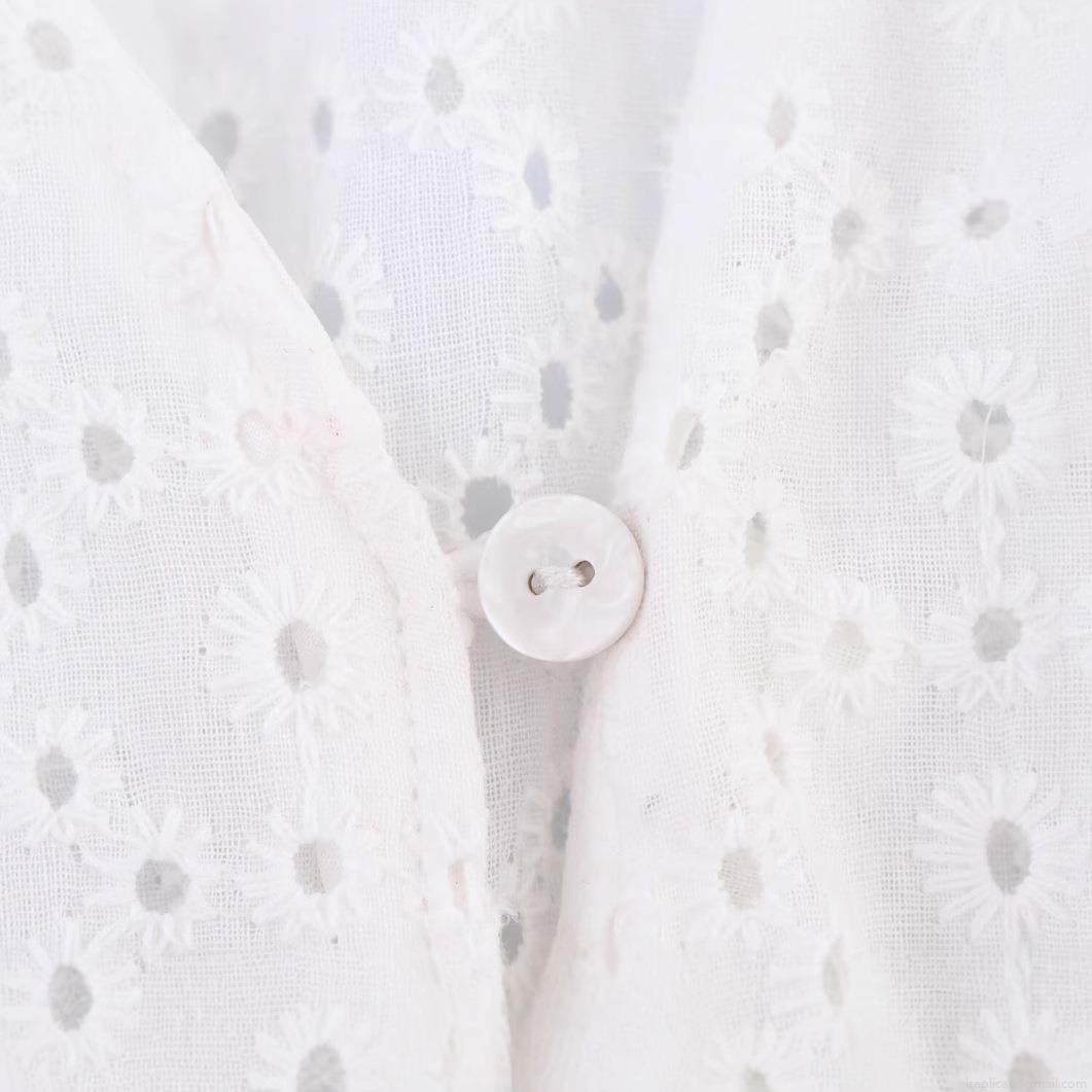 Solid Color, Splice, Embroidery, Hollow Out, Buttons, Floral Hollow