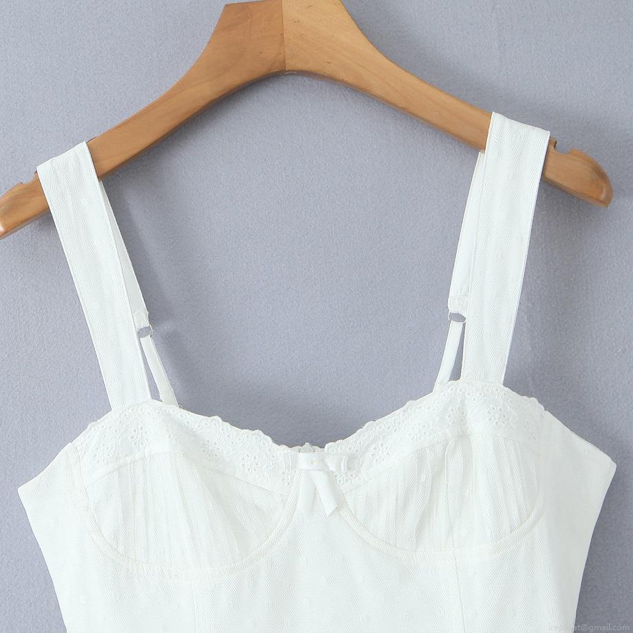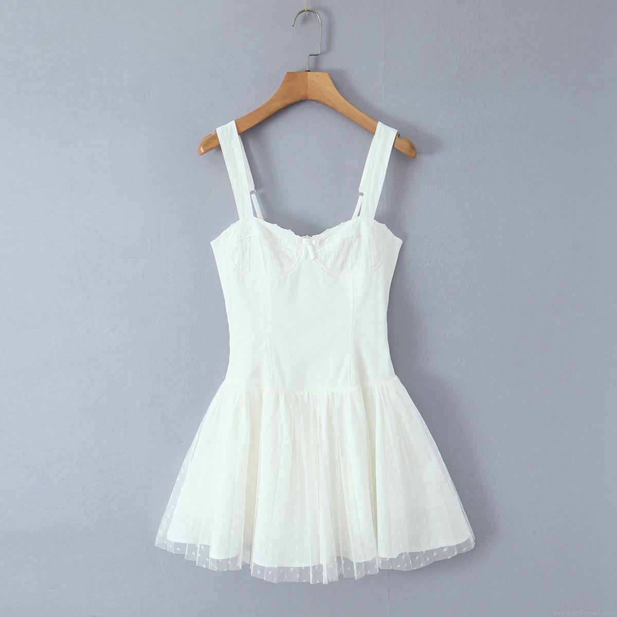 • Women White Polka Dot Mesh Polyester Cami Dress With Lace Trim And Bow Detail Sexy Slim Fit Layered Mini Dress For Summer Party Date Night