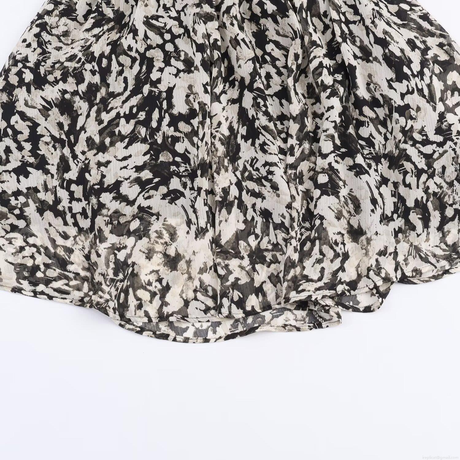 Ruffles, Belt Decoration, Lantern Sleeves, Abstract Floral Pattern