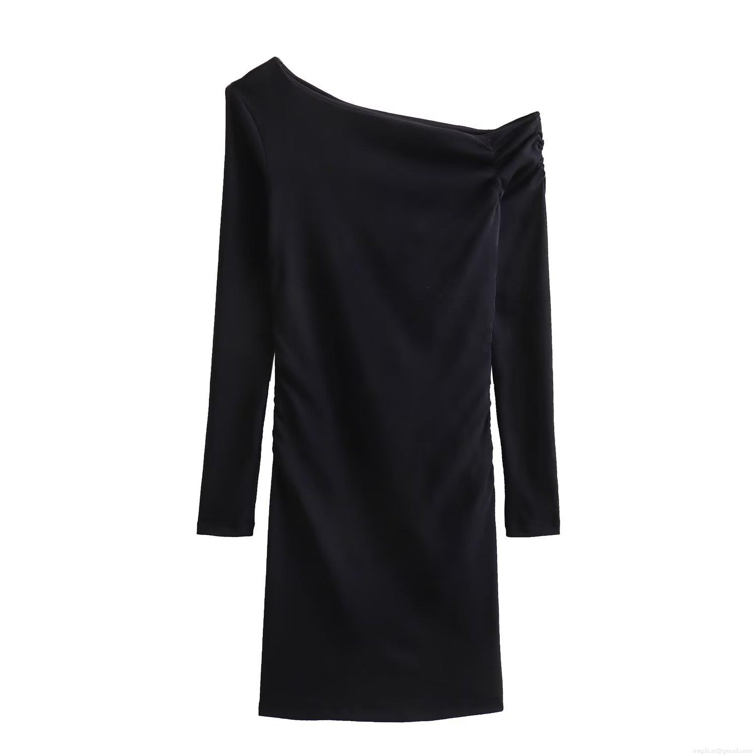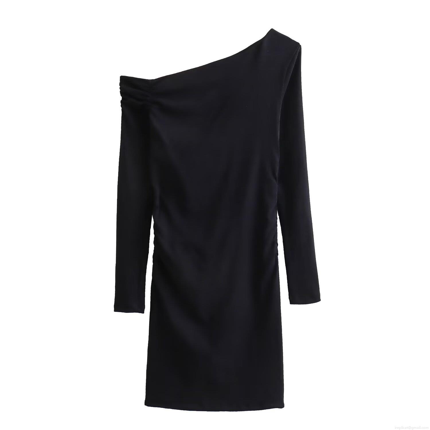 • Women's Asymmetric One Shoulder Long Sleeve Ruched Mini Dress Elegant Solid Color Slim Fit Bodycon Party Dress Sexy Clubwear For Ladies