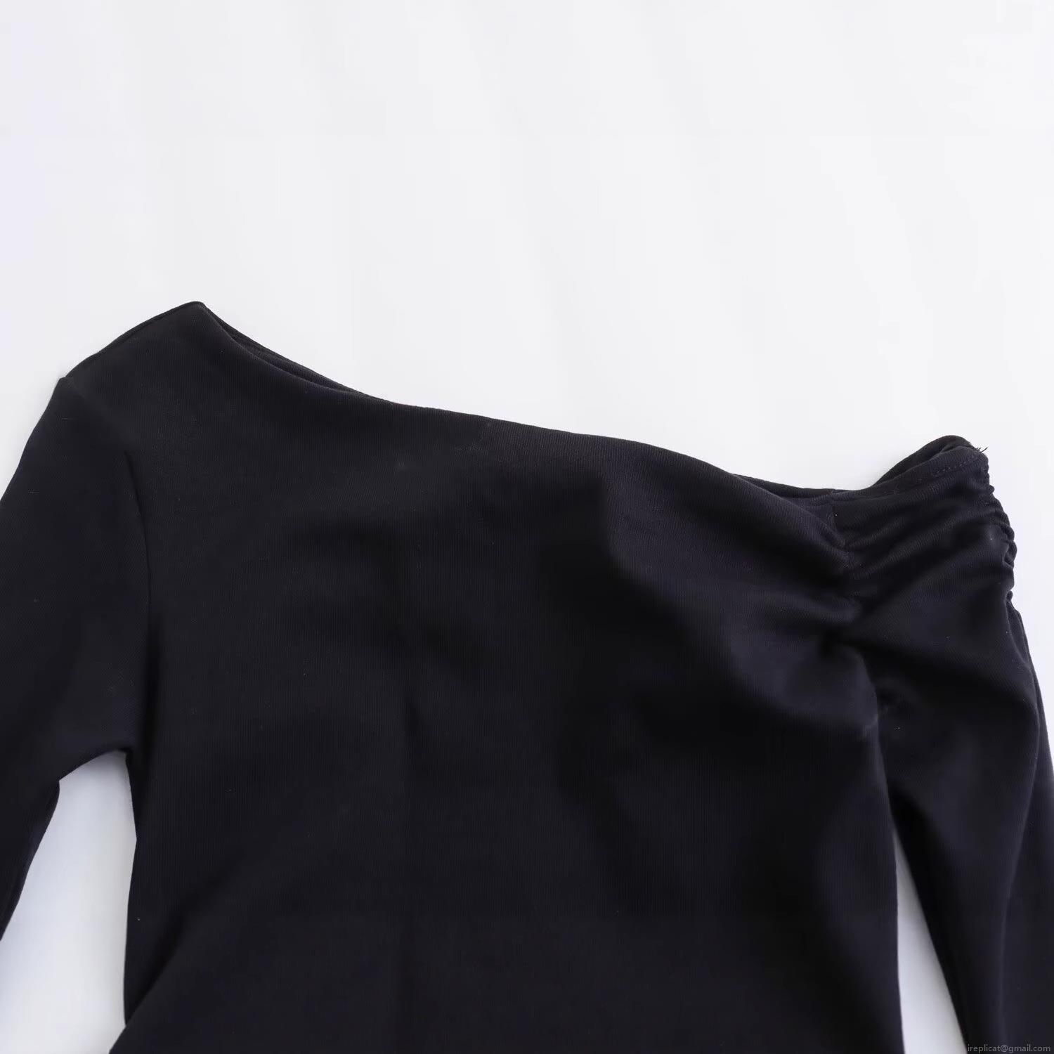 Solid Color, Asymmetrical Collar, Asymmetrical Design, Gathered Decoration