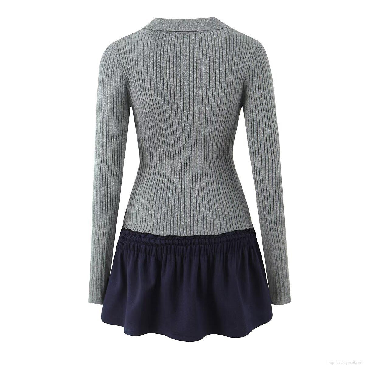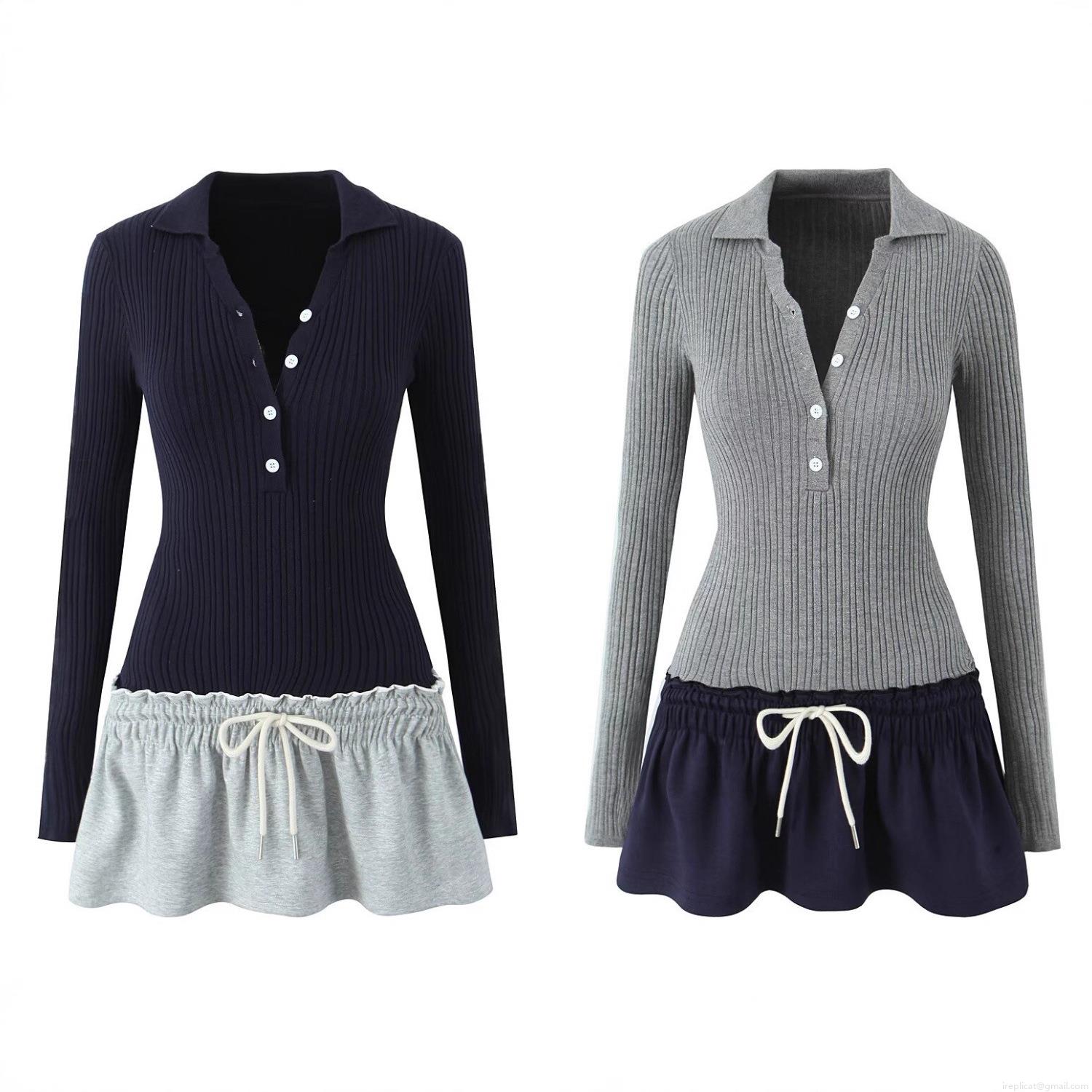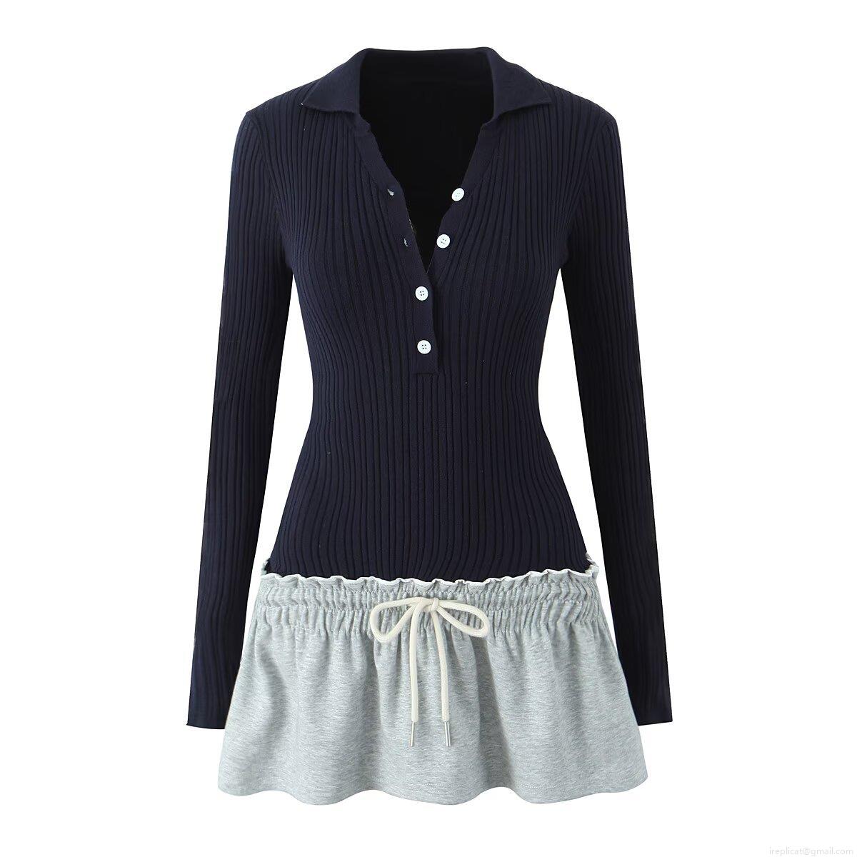 • Women's Autumn V-Neck Long Sleeve Color Block Patchwork Knit Mini Dress With Drawstring Waist Slim Fit Ribbed Knitted Short Dress For Women Streetwear